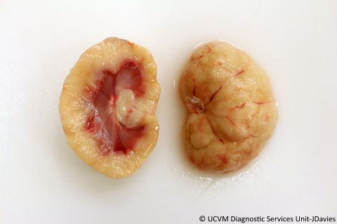 Ruminant, Bovine: Intestines. Mesenteric edema in hardware disease.