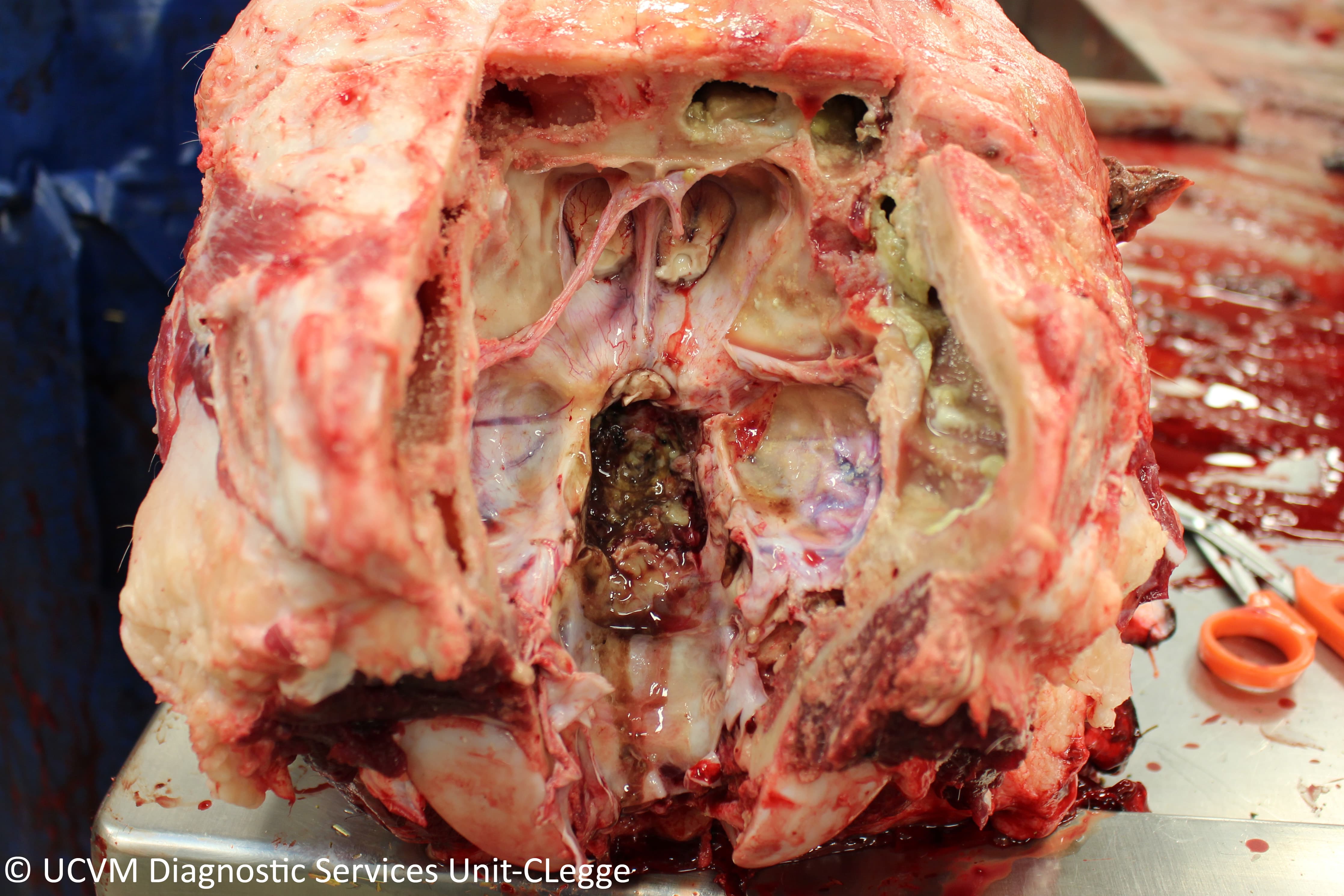 Shown: Suppurative hypophysitis (pituitary gland abscess) and sinusitis
