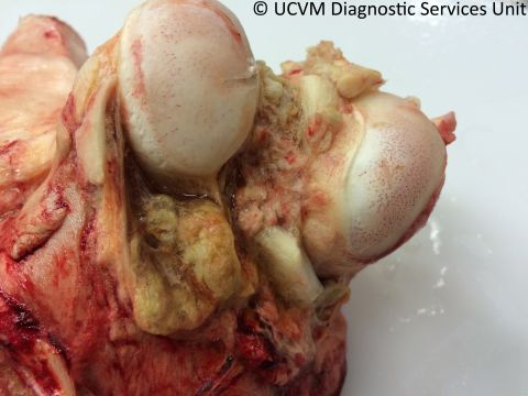 Shown: Fibrinosuppurative polyarthritis secondary to septicemia