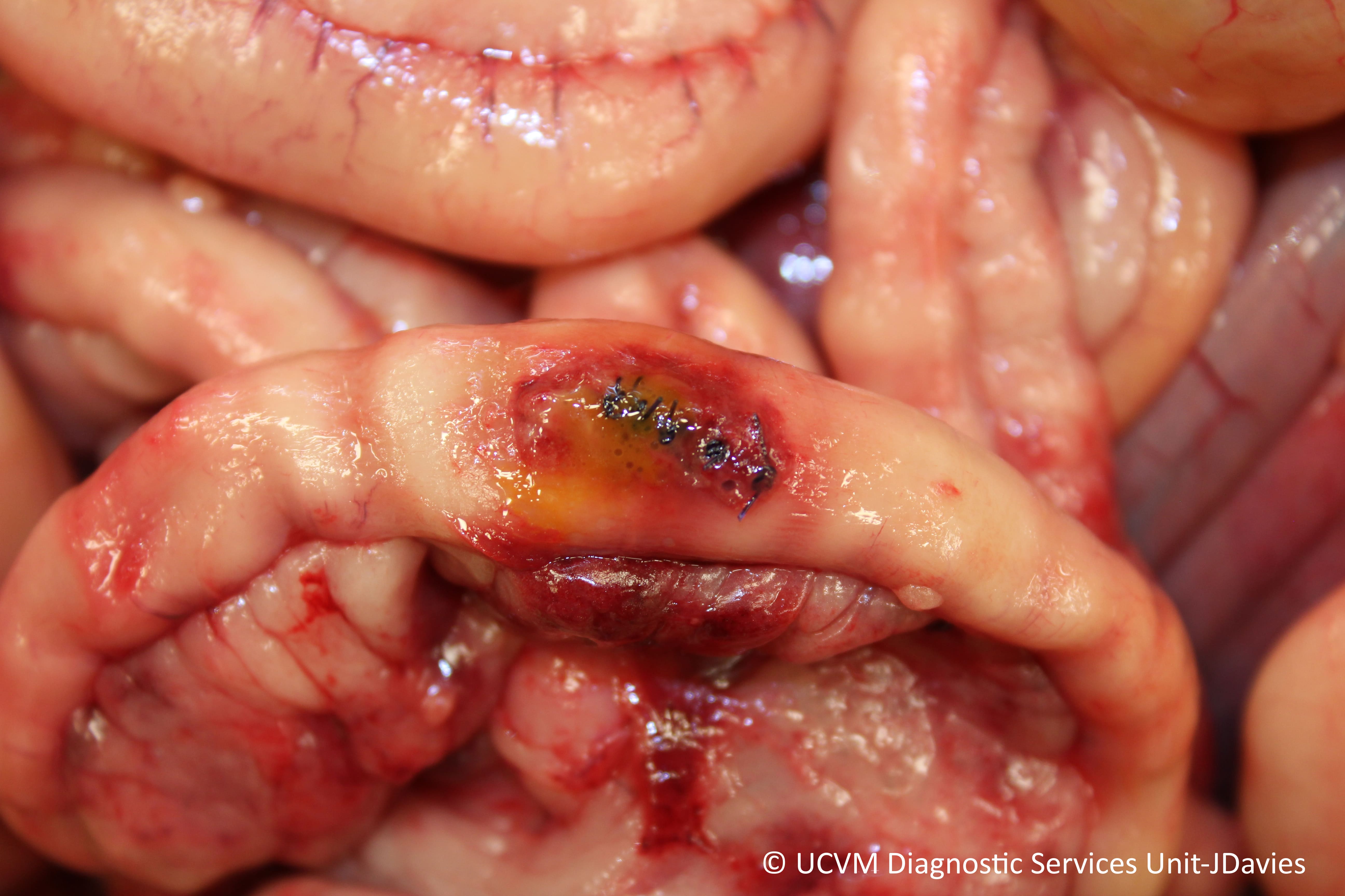 Shown: Dehiscence of intestinal anastomosis