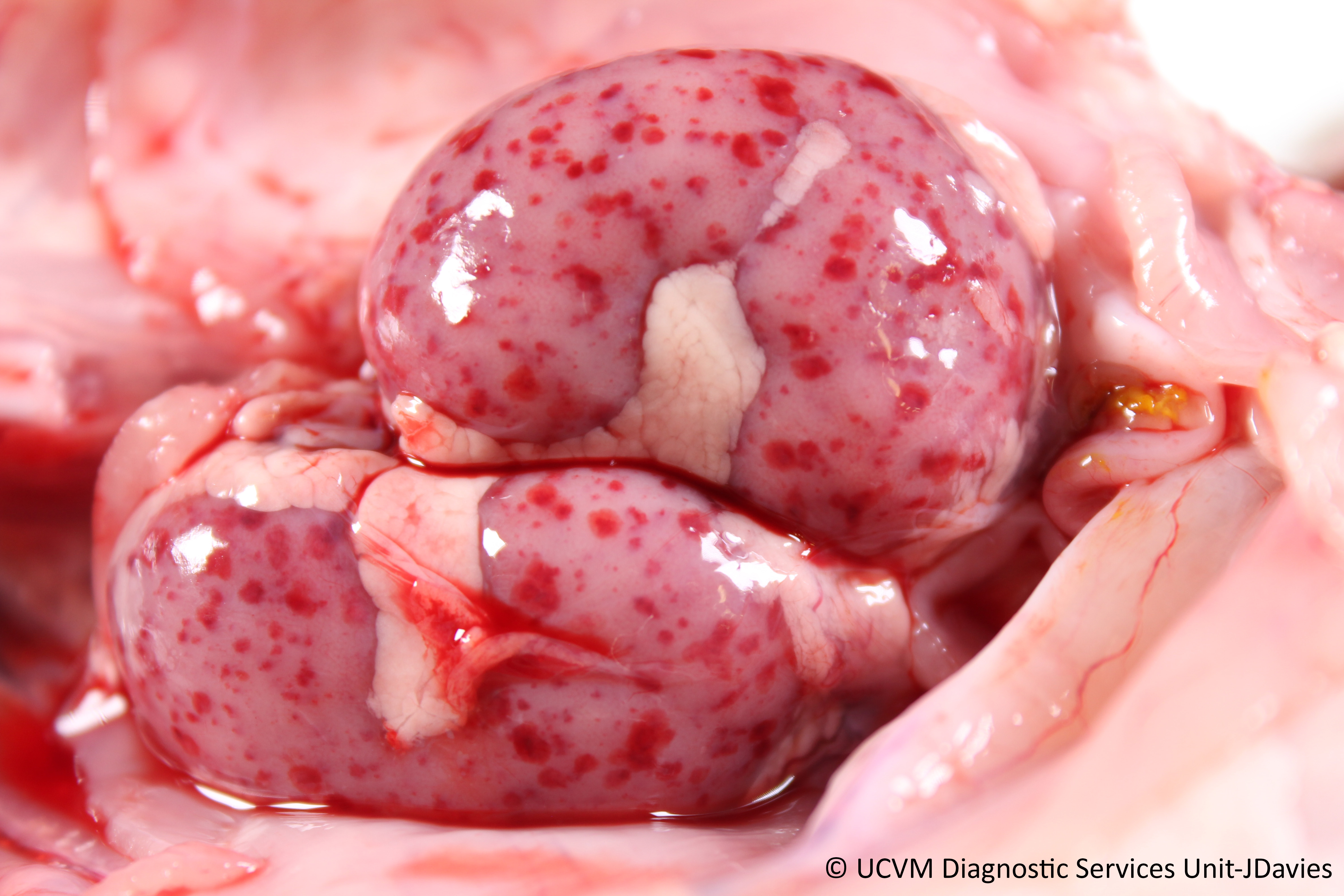 Renal necrosis with lytic and intranuclear inclusion bodies caused by Canine Herpes Virus 1