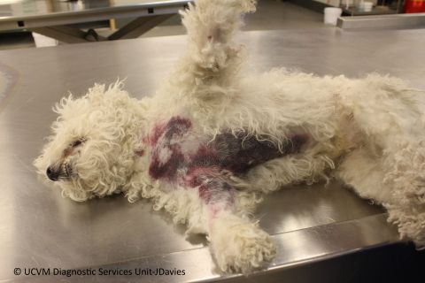 Icterus/Jaundice and subcutaneous edema (hemolytic anemia due to septicemia and disseminated intravascular coagulation)