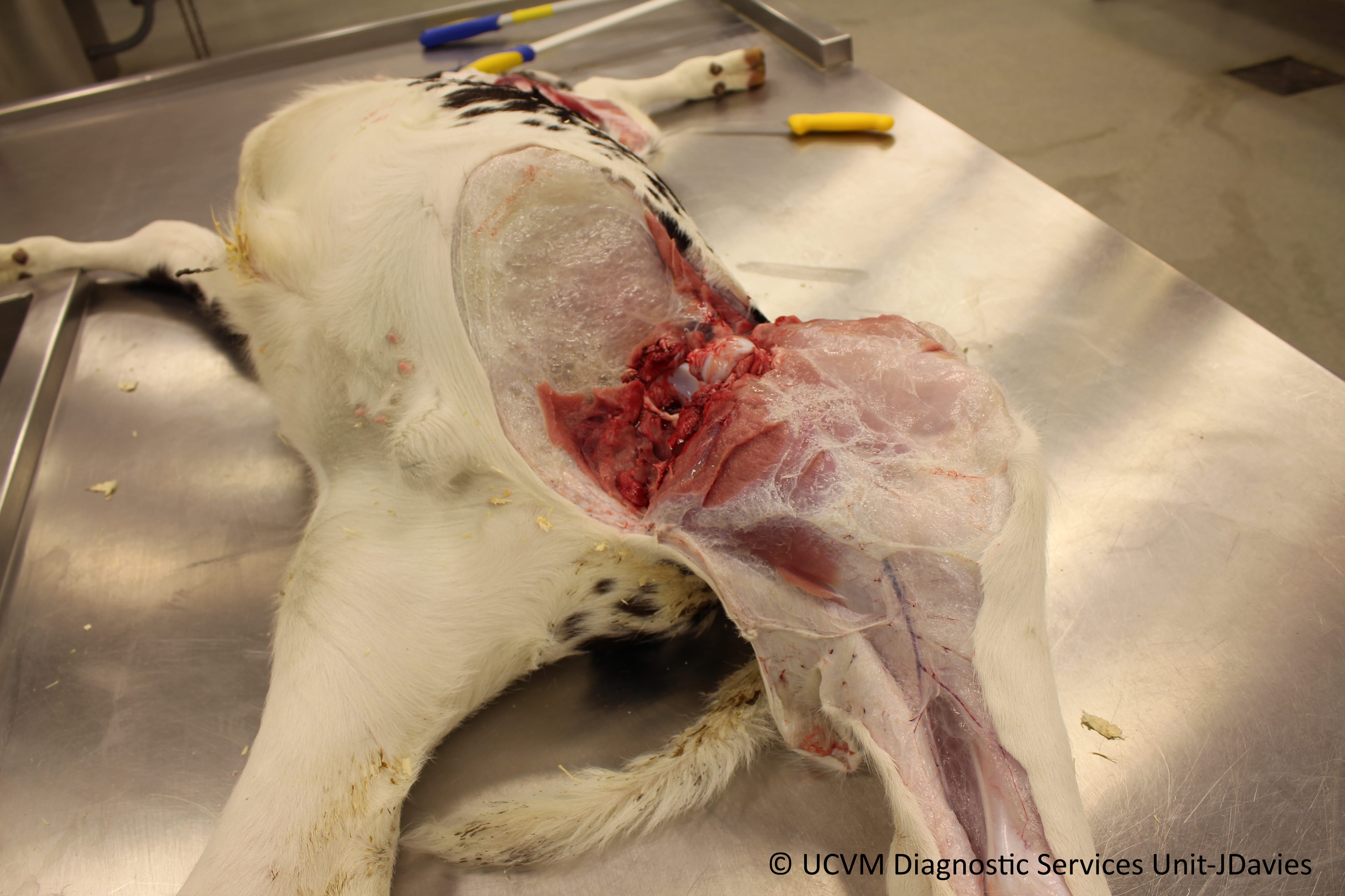Shown: Subcutaneous emphysema in a calf with clostridial abomasitis