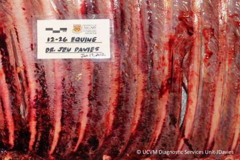 Shown: Petechiae and ecchymoses with Actinobacillus equuli septicemia
