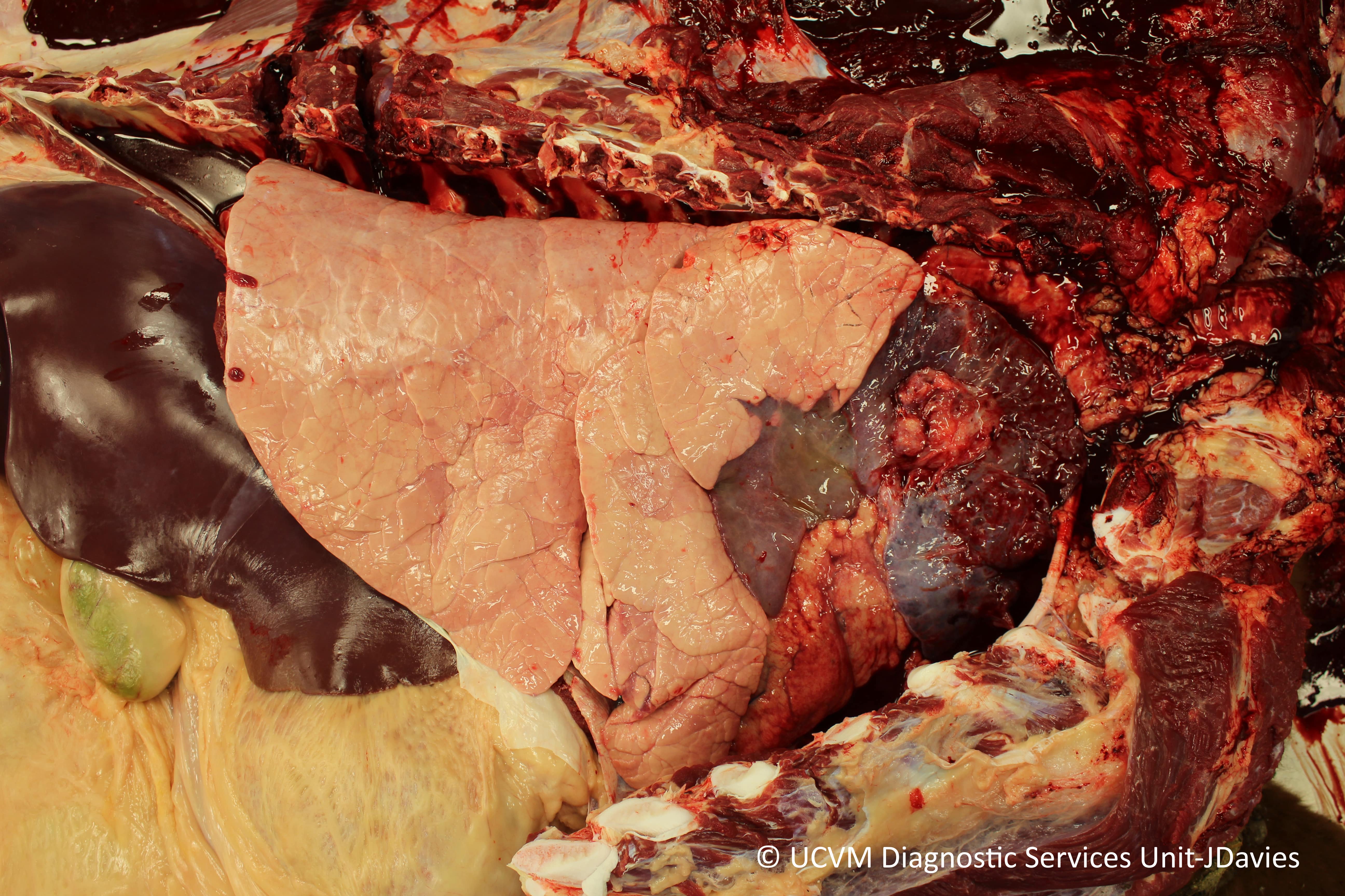 Shown: Suppurative pneumonia in a calf with bovine viral diarrhea