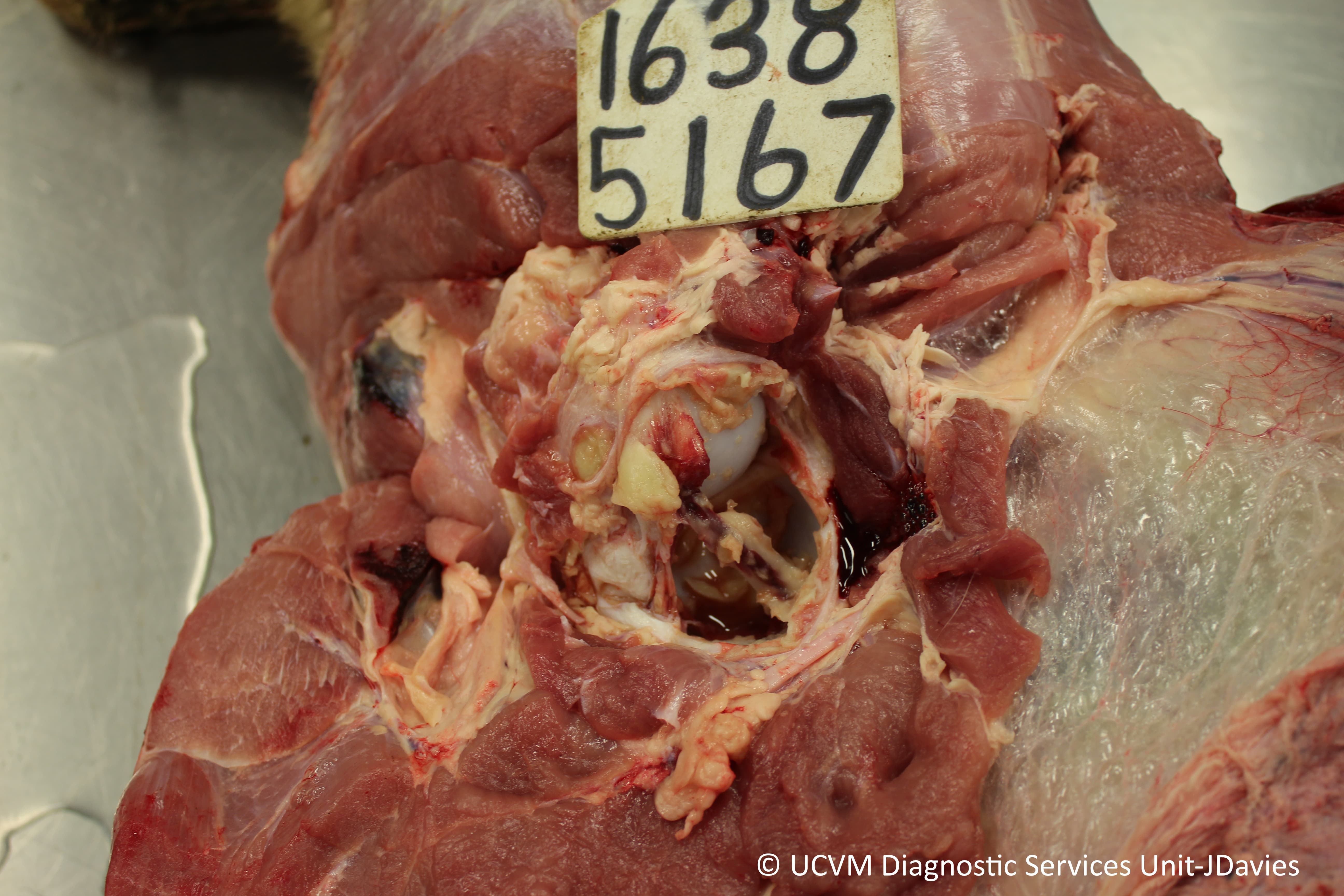 Fibrinosuppurative polyarthritis secondary to bacterial endocarditis (Streptococcus dysgalactiae)