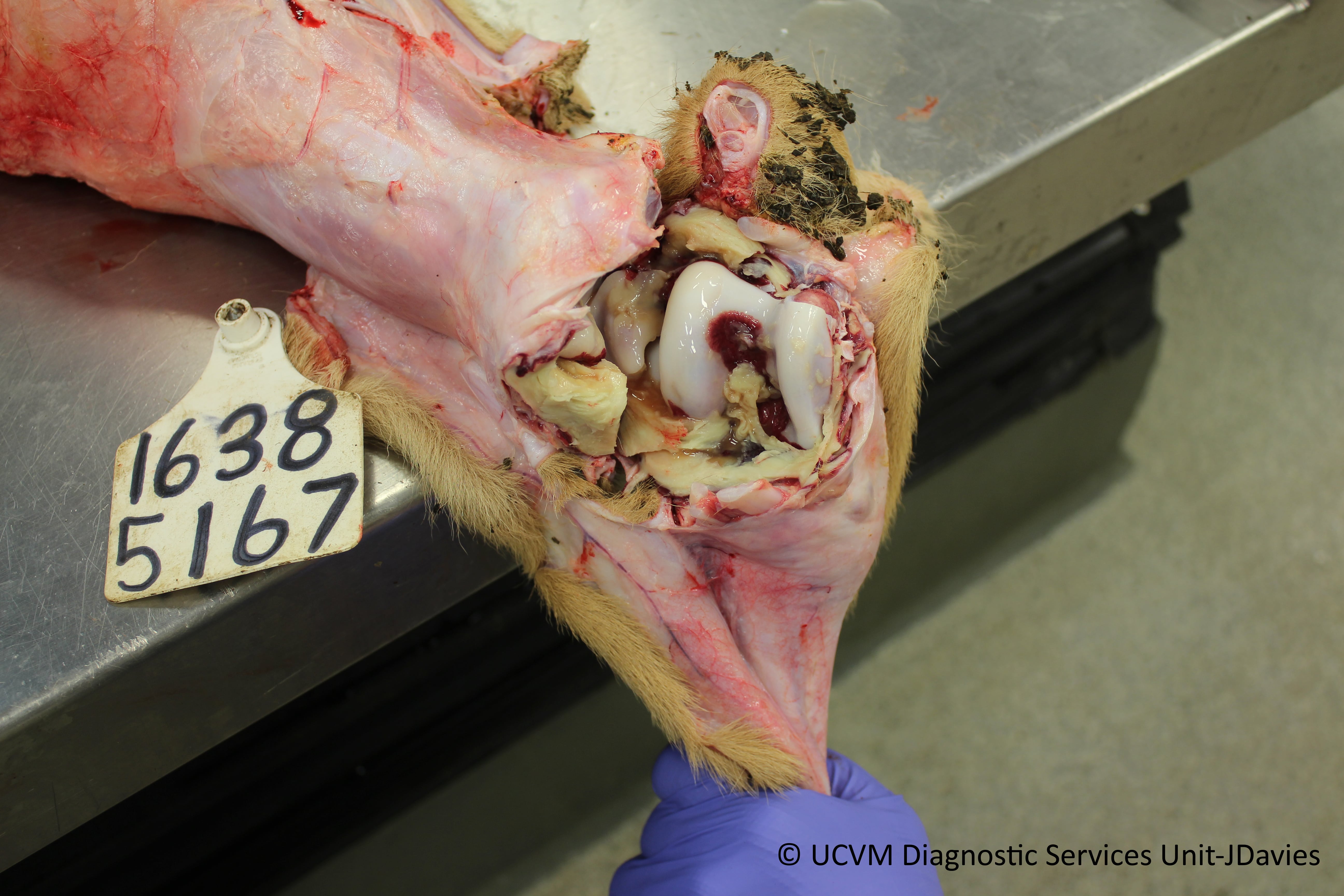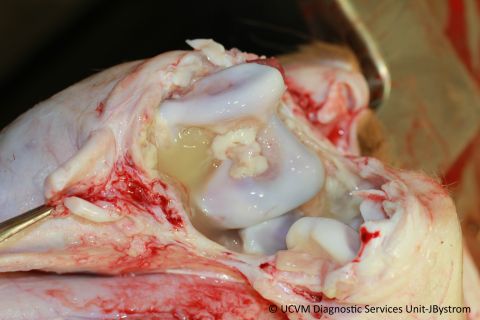 Fibrinosuppurative polyarthritis secondary to bacterial endocarditis (Streptococcus dysgalactiae)