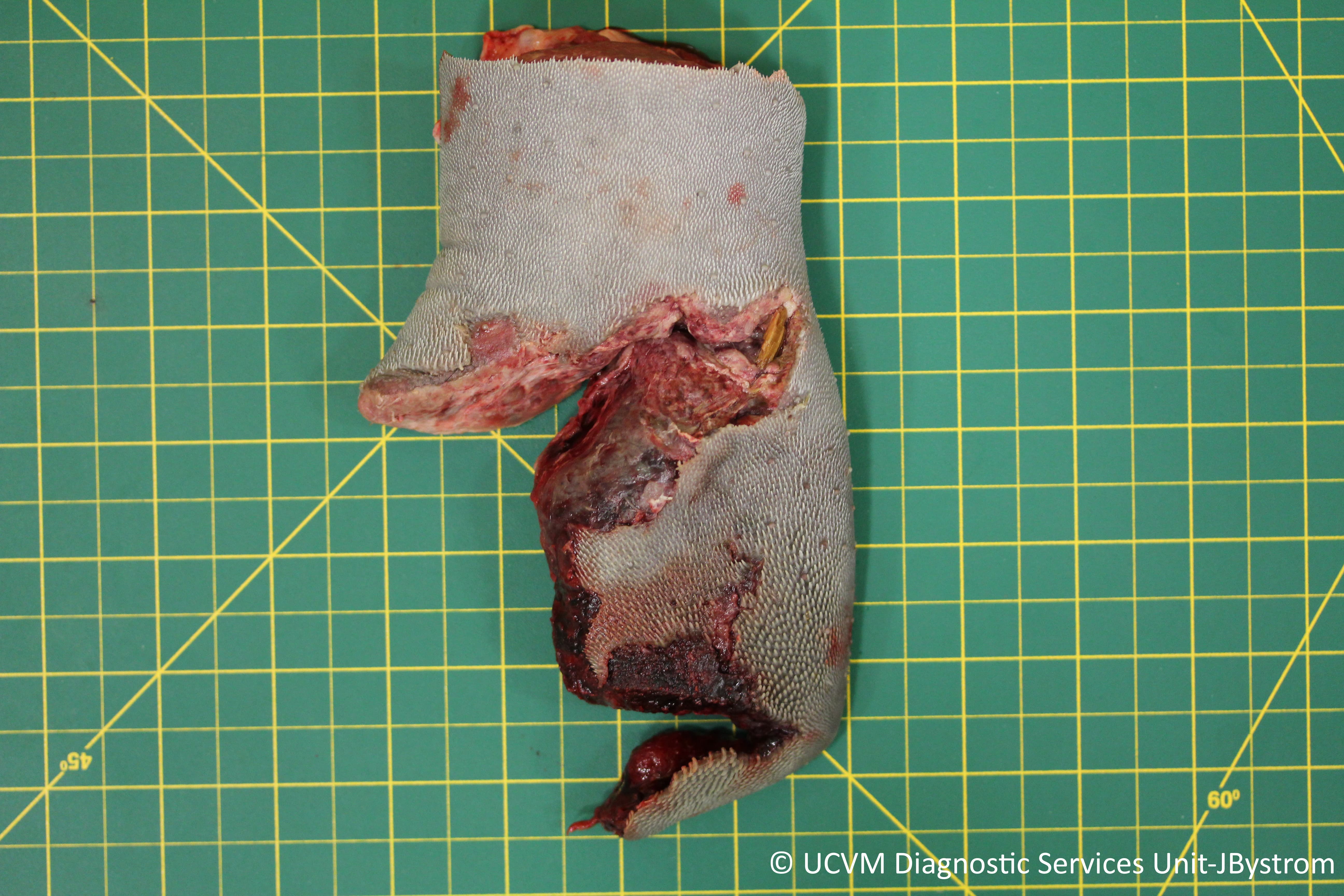 Ruminant, Bovine (calf): Peritoneum. Peritonitis following abomasal perforation in a calf with clostridial abomasitis.