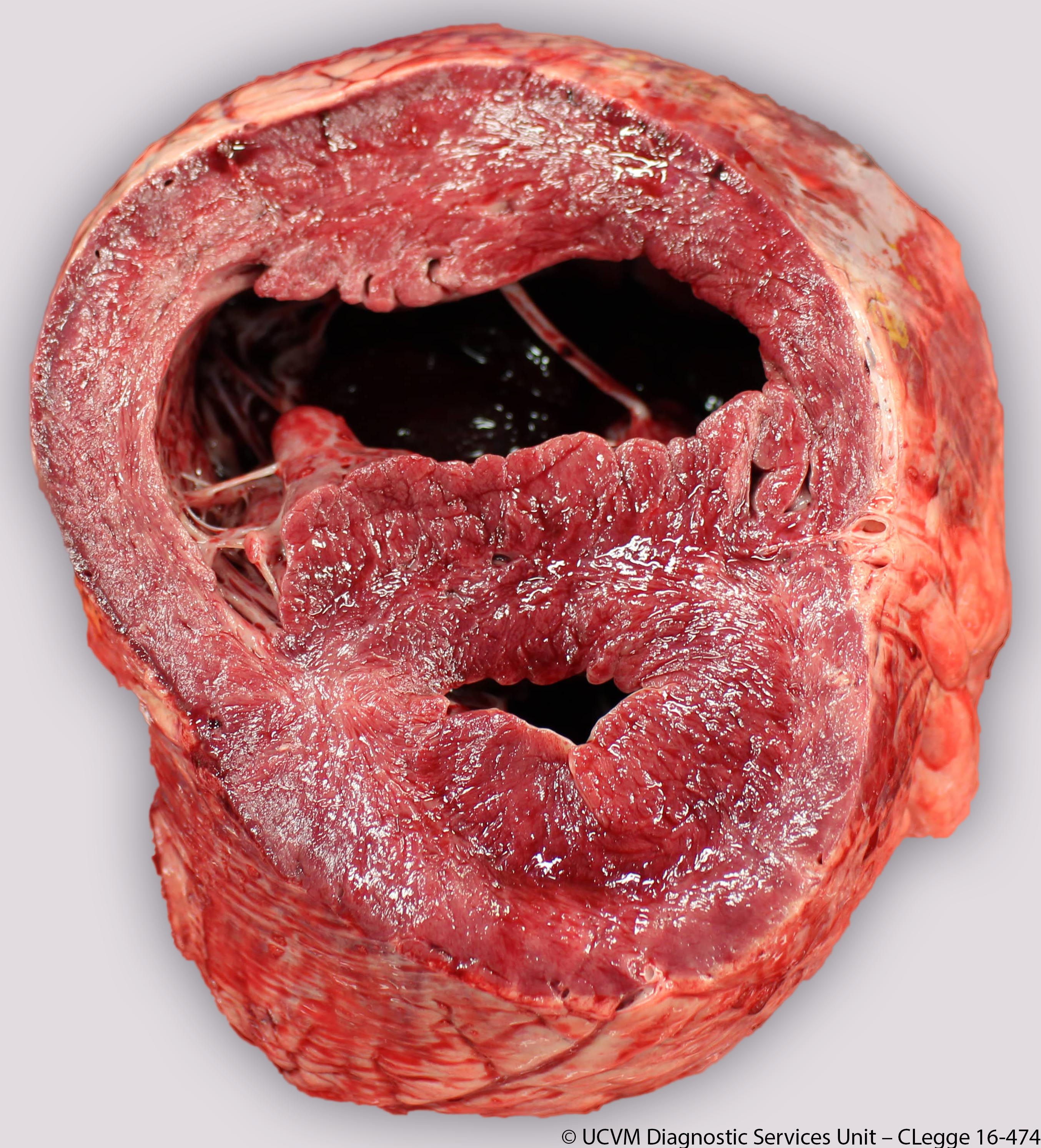 Shown: Right ventricular myocardial hypertrophy secondary to cor pulmonale