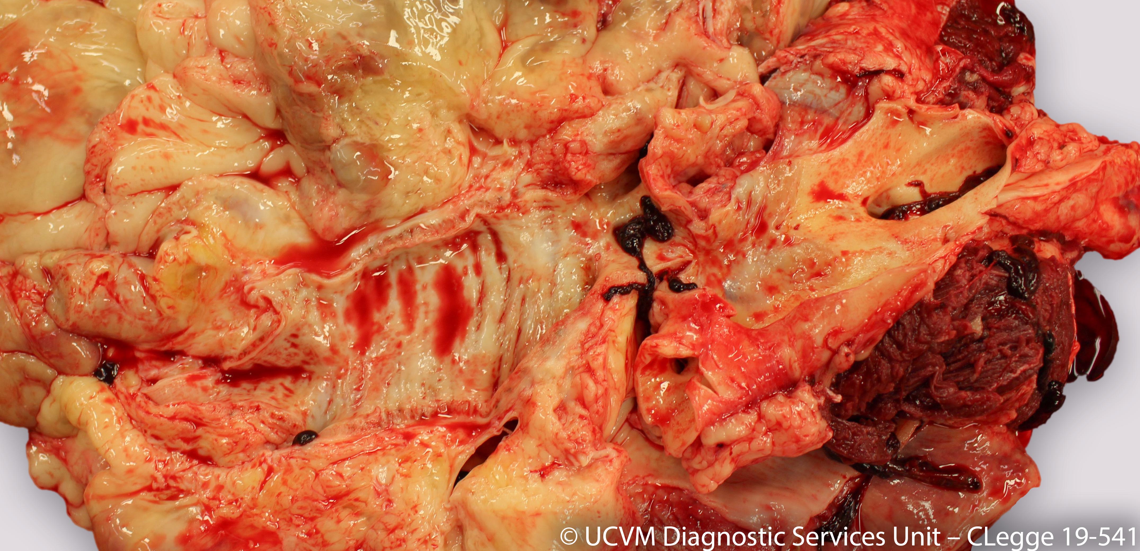 Lesions range from insignificant intimal tracks, to occlusive thrombotic lesions in the cranial mesenteric and ileocecocolic arteries