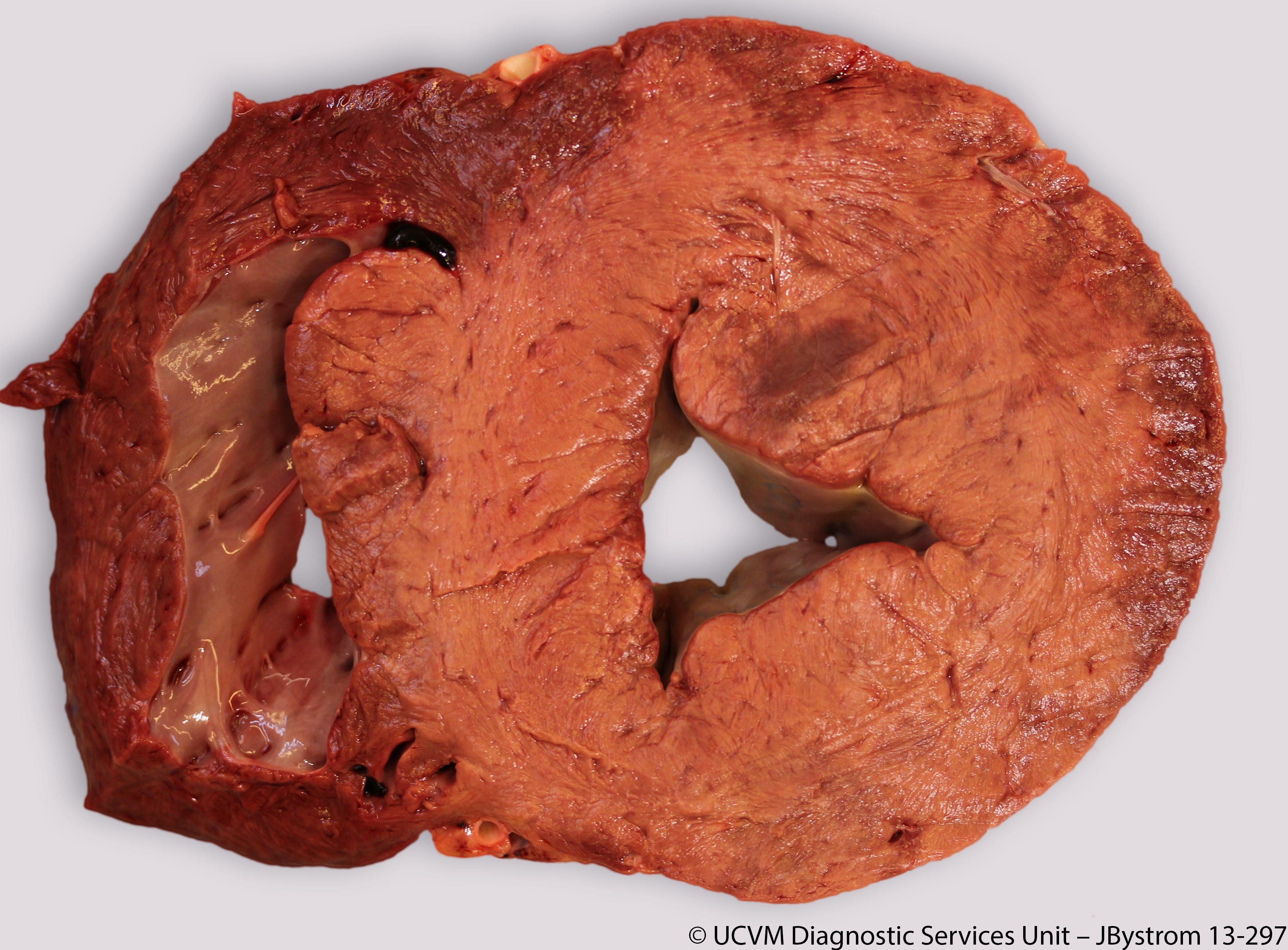 Myocardial necrosis in monensin (ionophore) toxicity