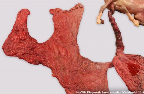 Dog: Thorax. Hydrothorax and hydropericardium in right-sided heart failure.