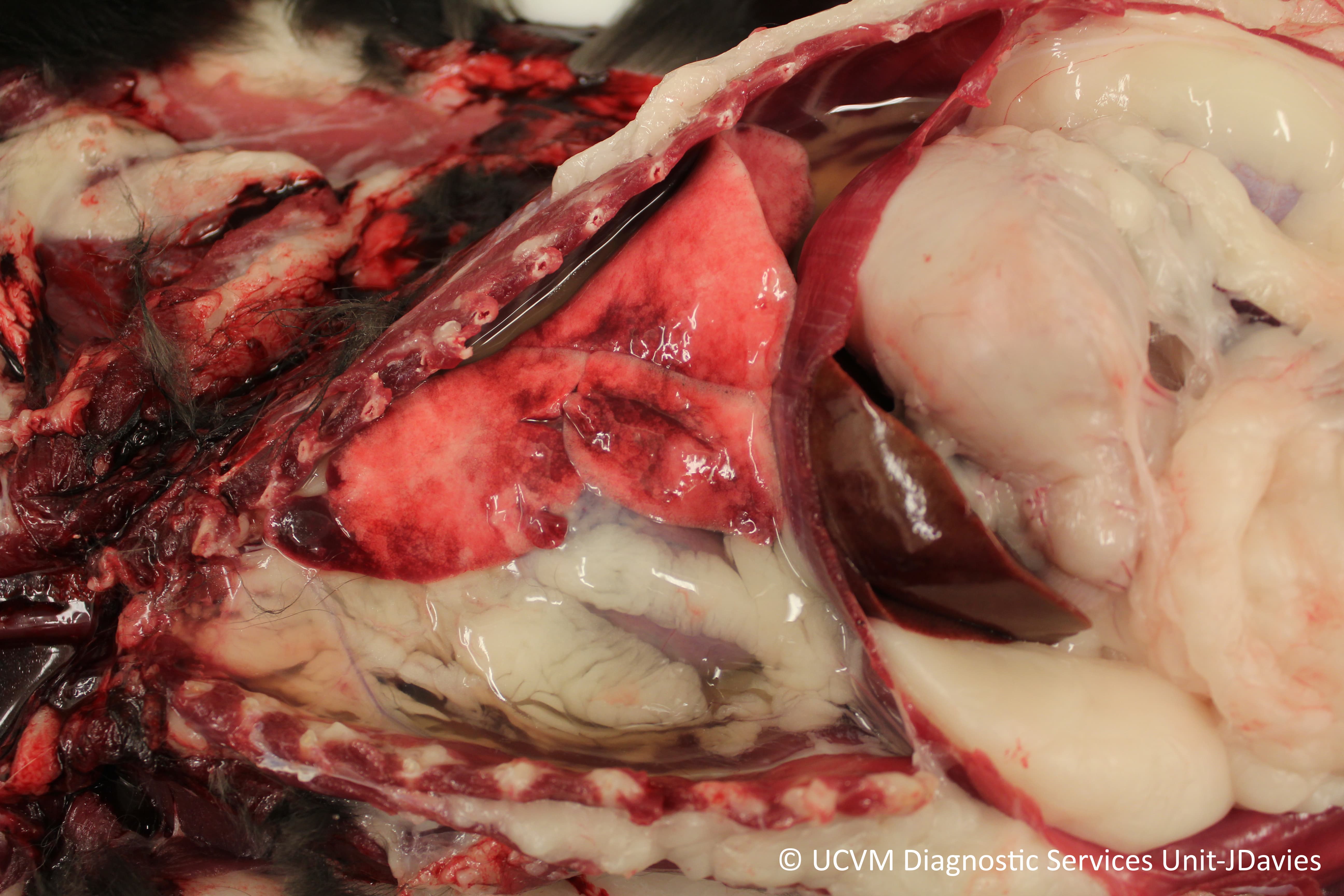 Shown: Hydrothorax and hydropericardium in a cat with heart failure caused by endomyocarditis