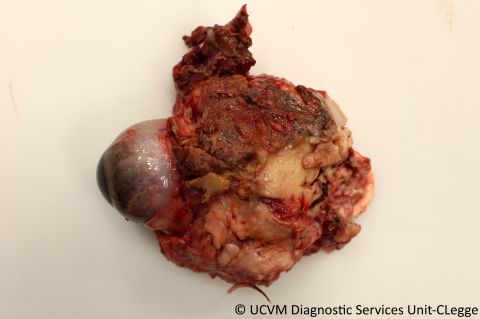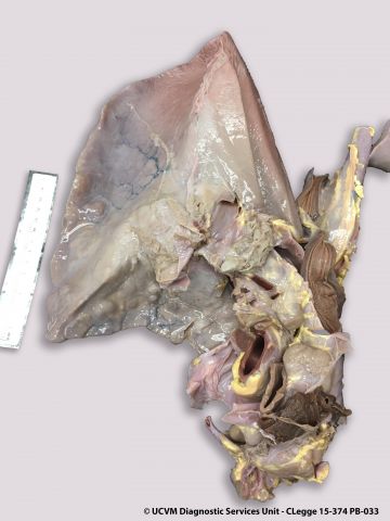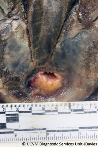 Equid, Foal: Esophagus. Ulcerative esophagitis due to Candida albicans.