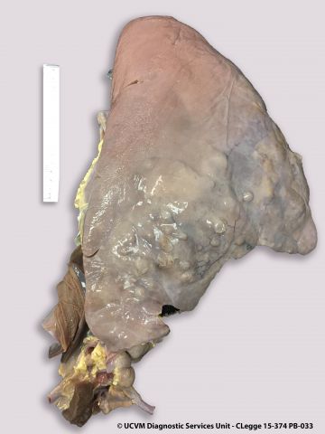 Shown: Pulmonary abscesses caused by Rhodococcus equi