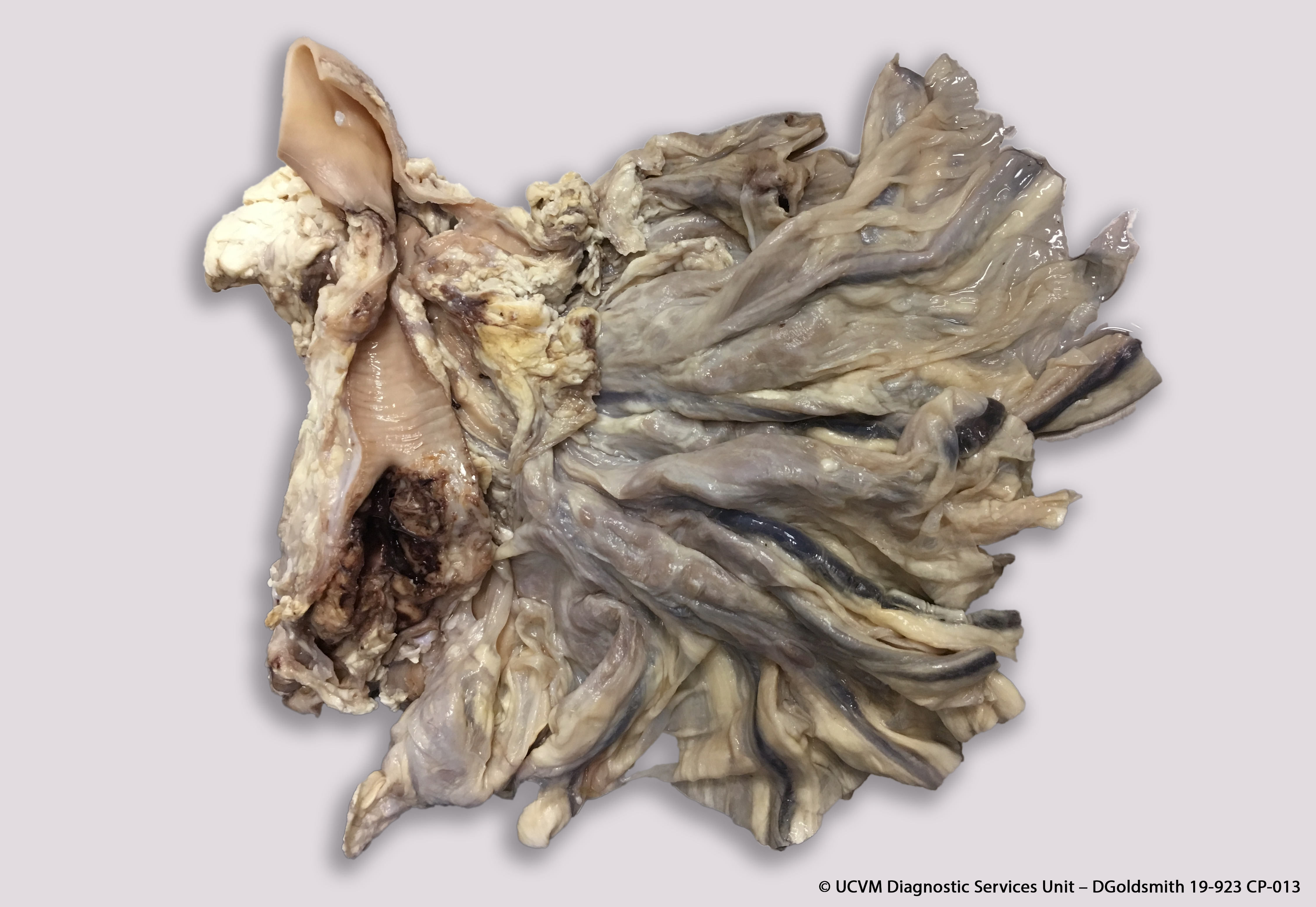 Lesions range from insignificant intimal tracks, to occlusive thrombotic lesions in the cranial mesenteric and ileocecocolic arteries