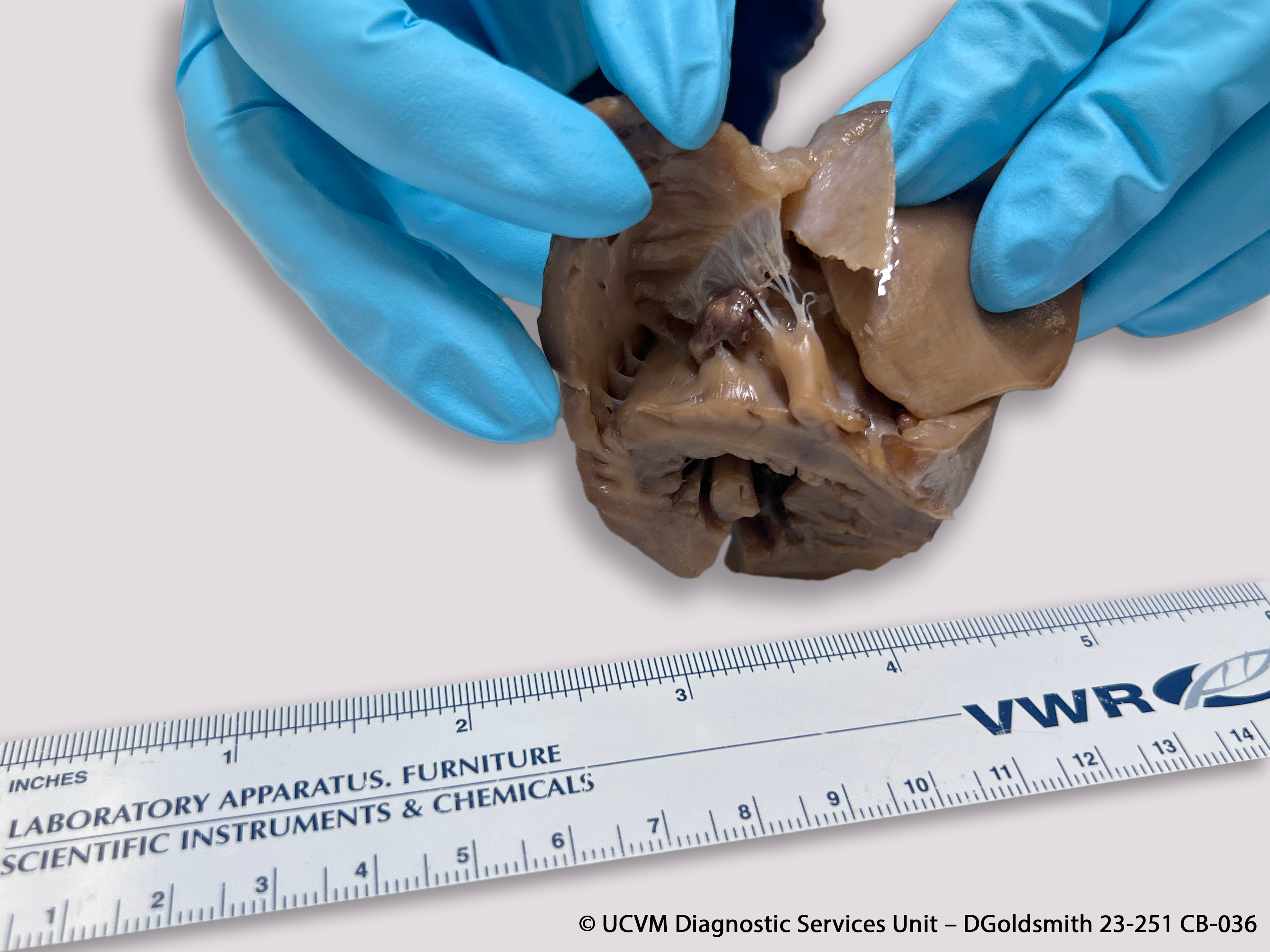 Irregular yellow-red or yellow-gray vegetations on the valve leaflets, with underlying ulcerations