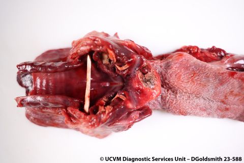 Shown: Immune-mediated vasculitis; necrotizing glossitis, laryngitis, and epiglottitis