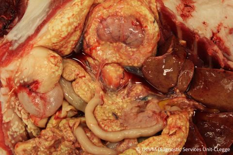 Shown: Necrotizing steatitis in acute pancreatic necrosis