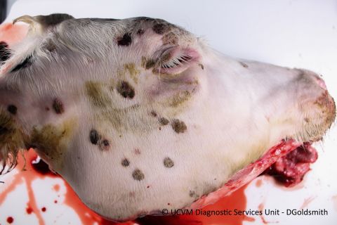 Shown: Severe necroulcerative cheilitis caused by Onchocerca spp.