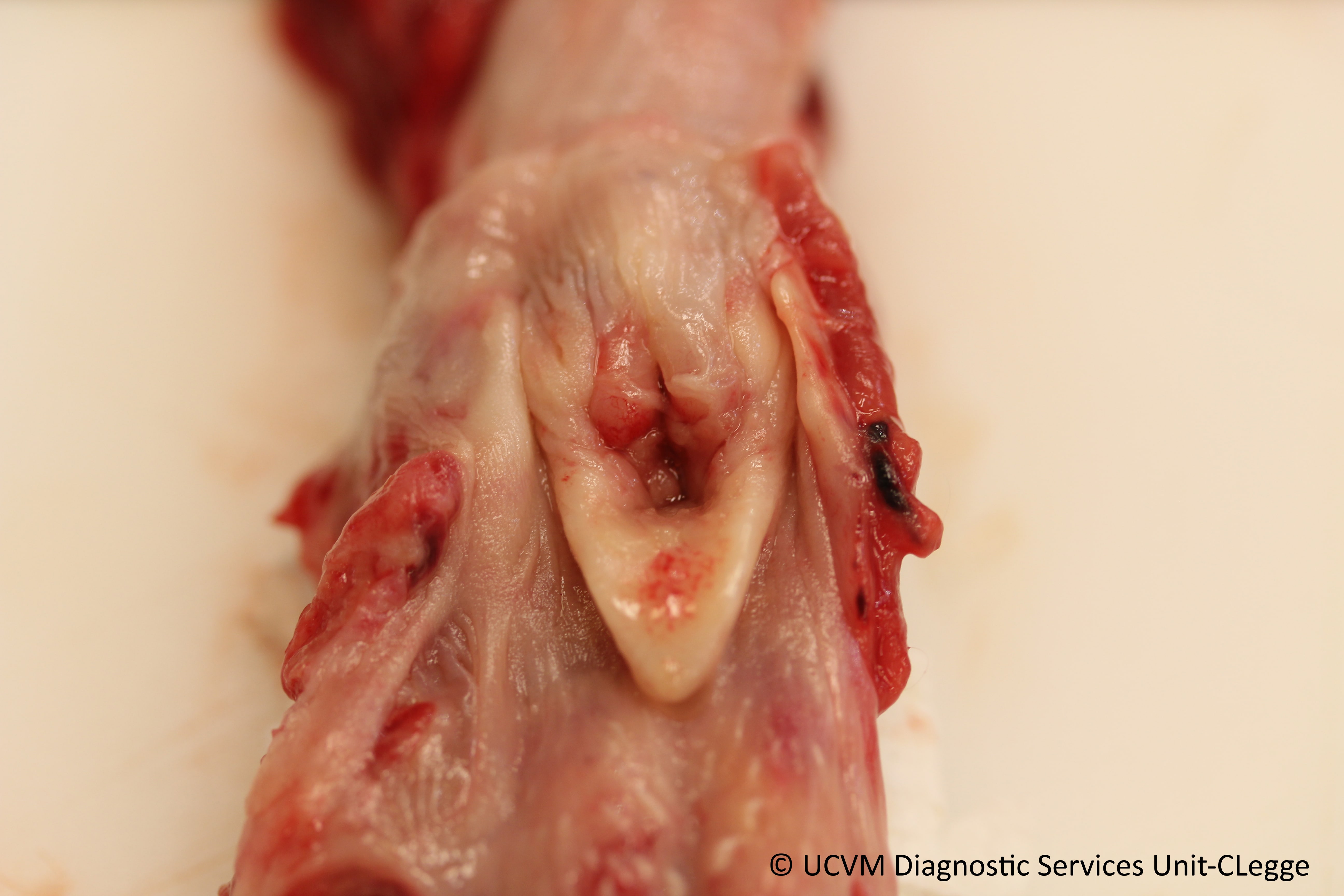 Ruminant, Bovine (calf): Kidney. Renal papillary necrosis due to dehydration.