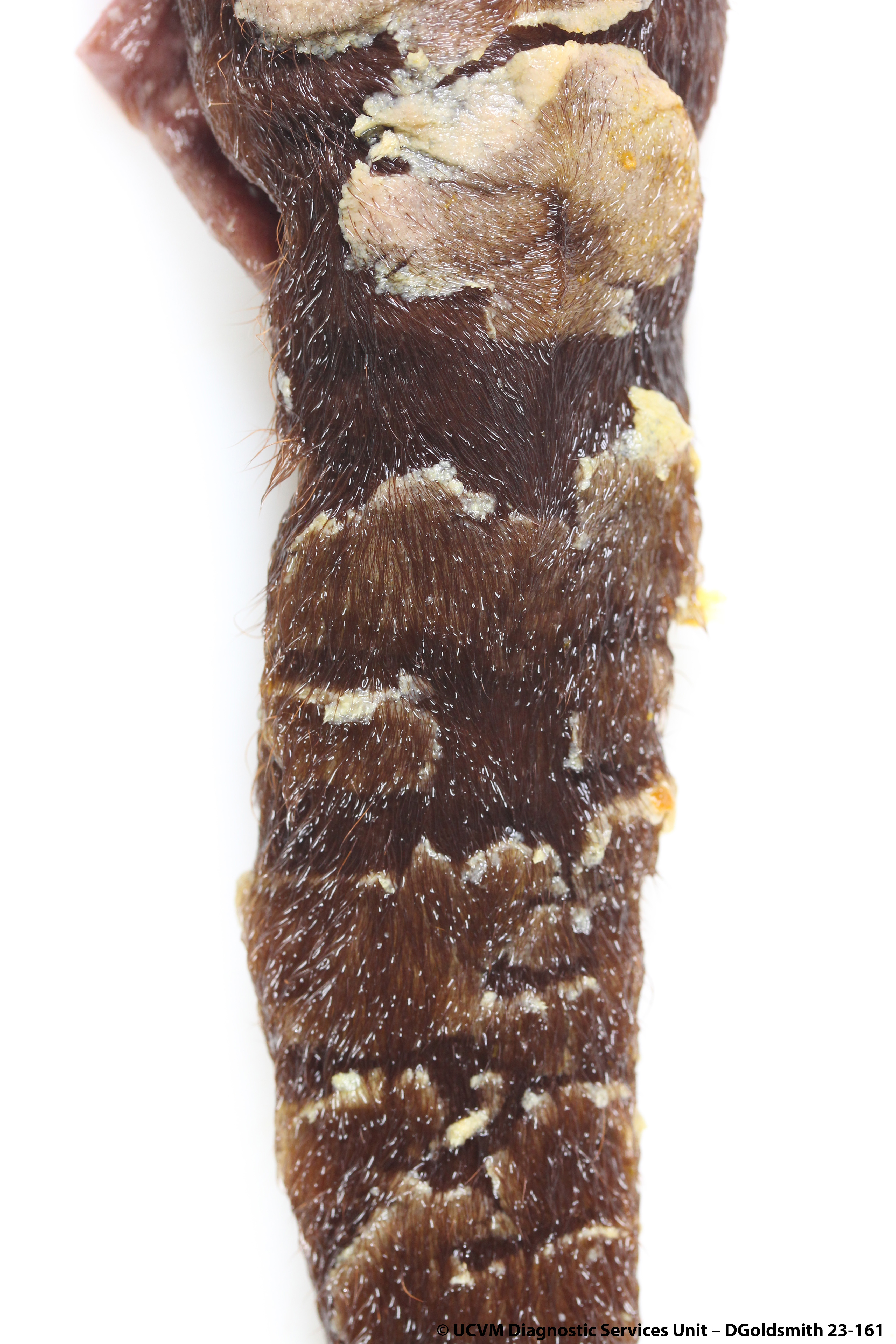 Shown: Multifocal pyogranulomatous dermatitis, fungal abortion