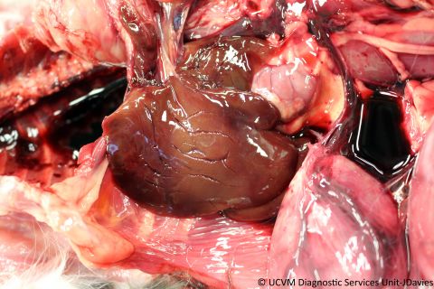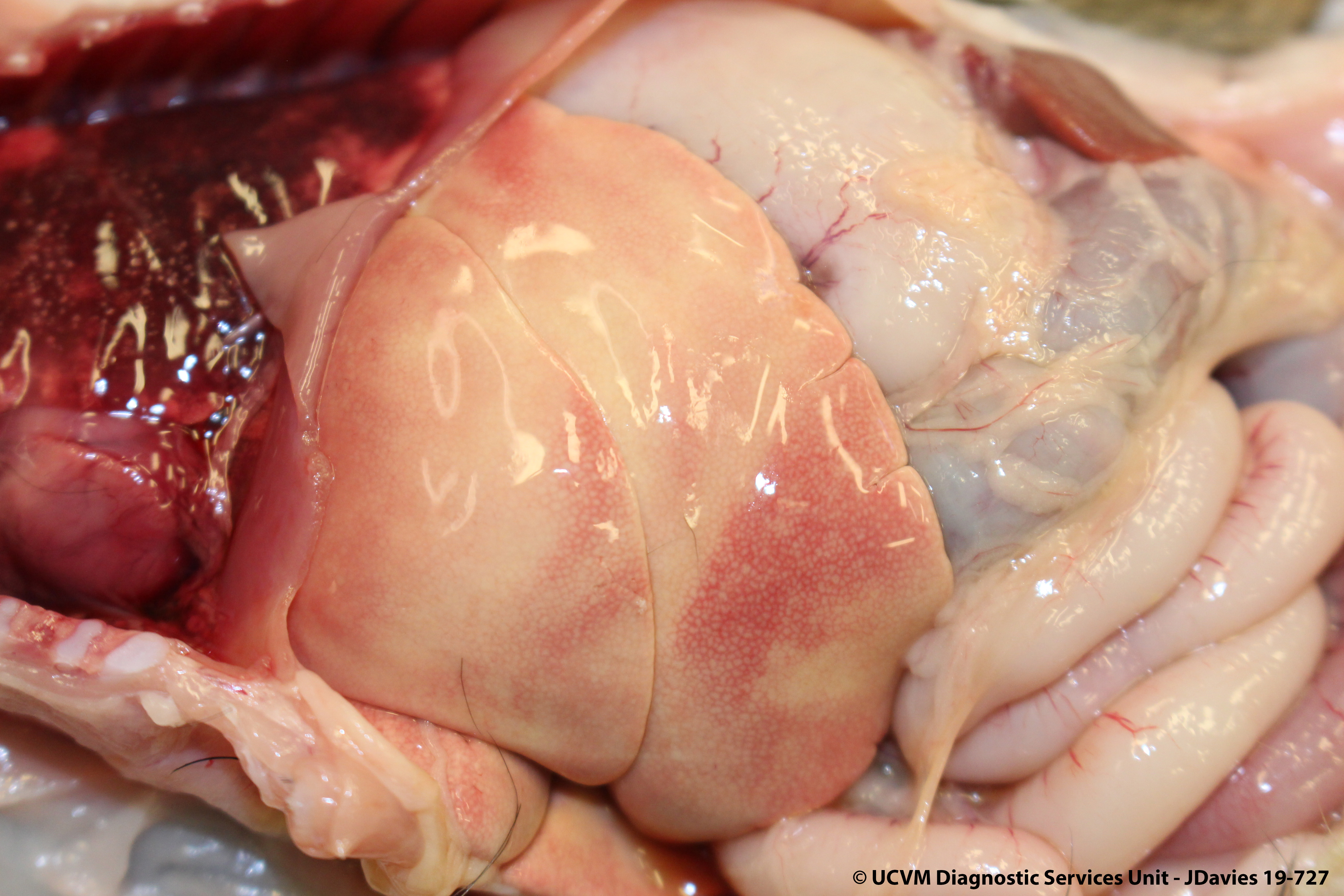 Ruminant, Bovine: Intestines. Mesenteric edema in hardware disease.