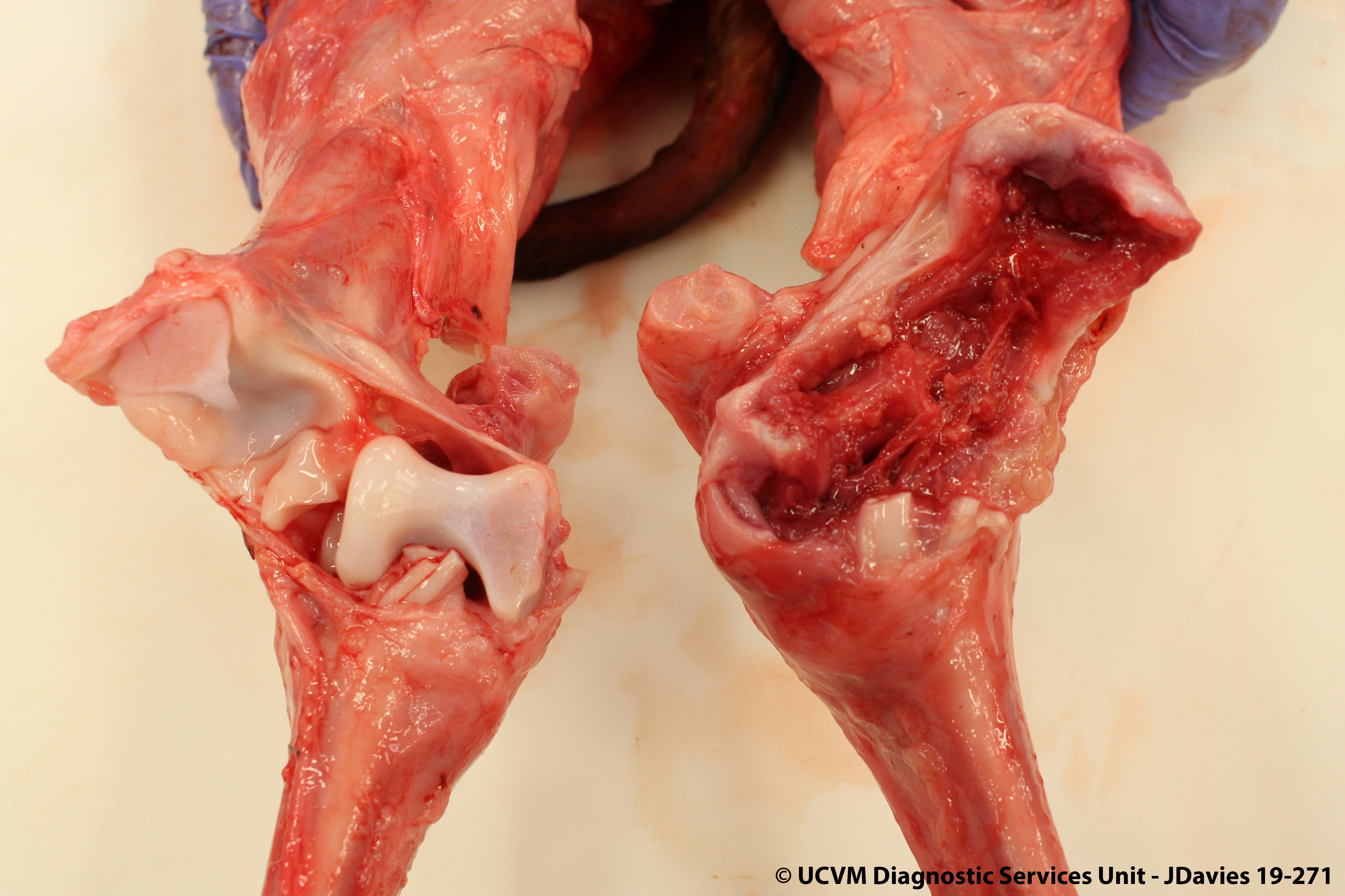 Shown: Destructive polyarthropathy caused by Ureaplasma diversum