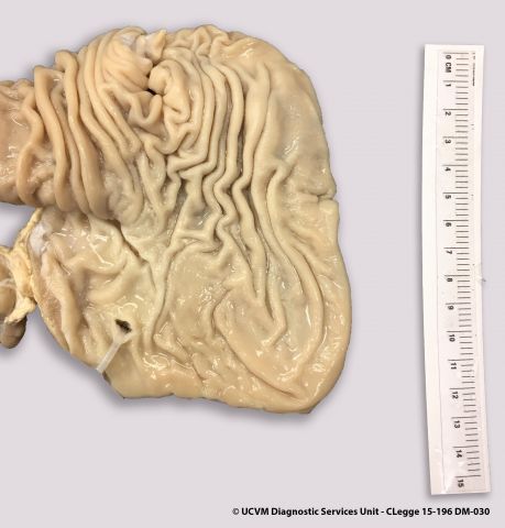 Ruminant, Ovine: Mesenteric lymphatics. Granulomatous lymphangitis in Johne's disease.