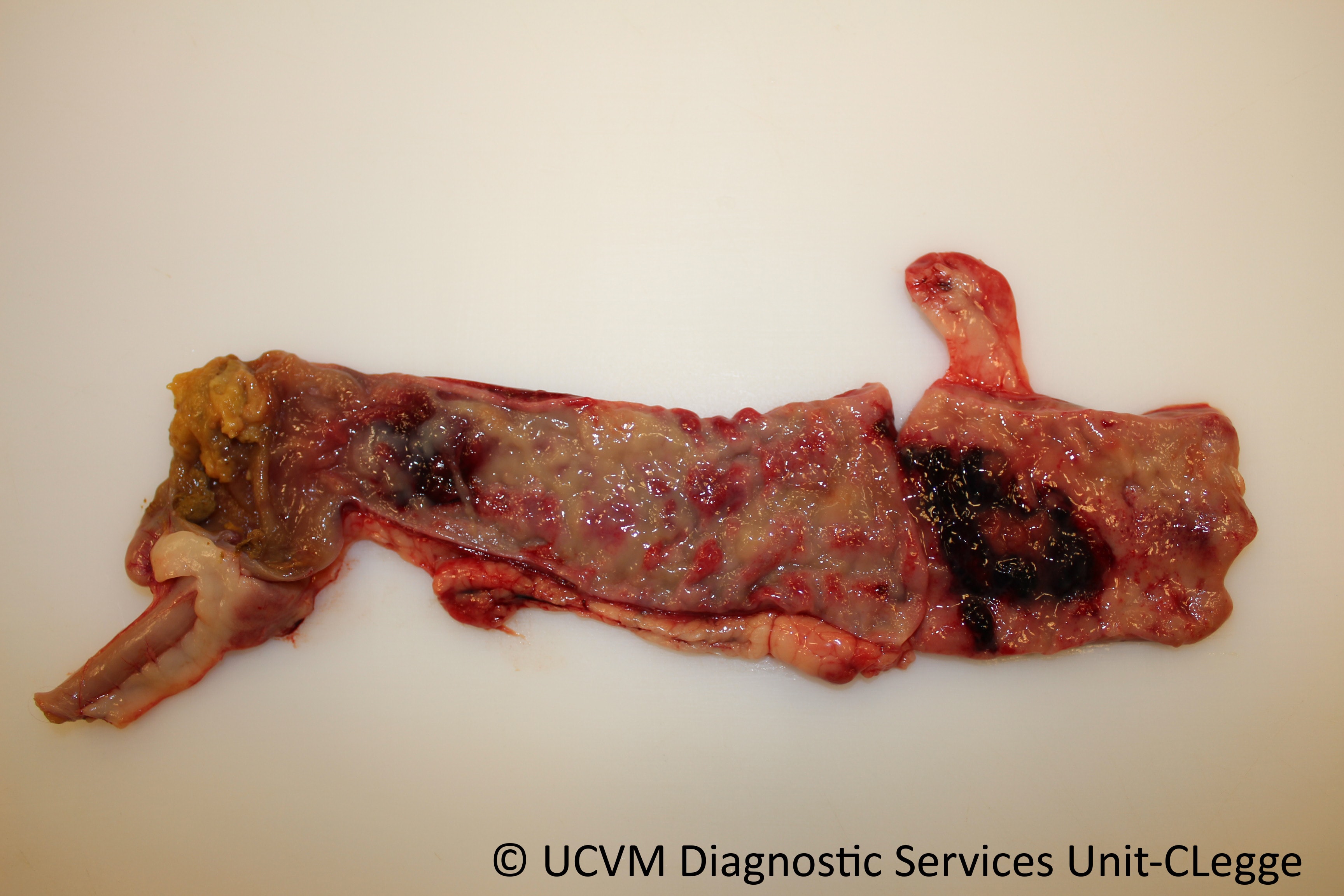 Equid, Foal: Esophagus. Ulcerative esophagitis due to Candida albicans.