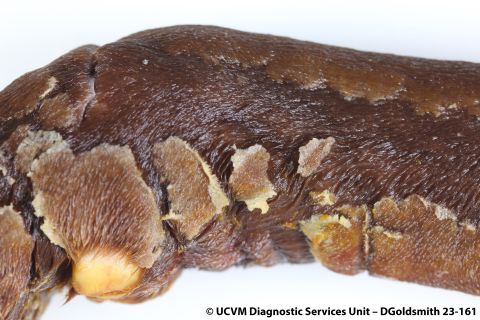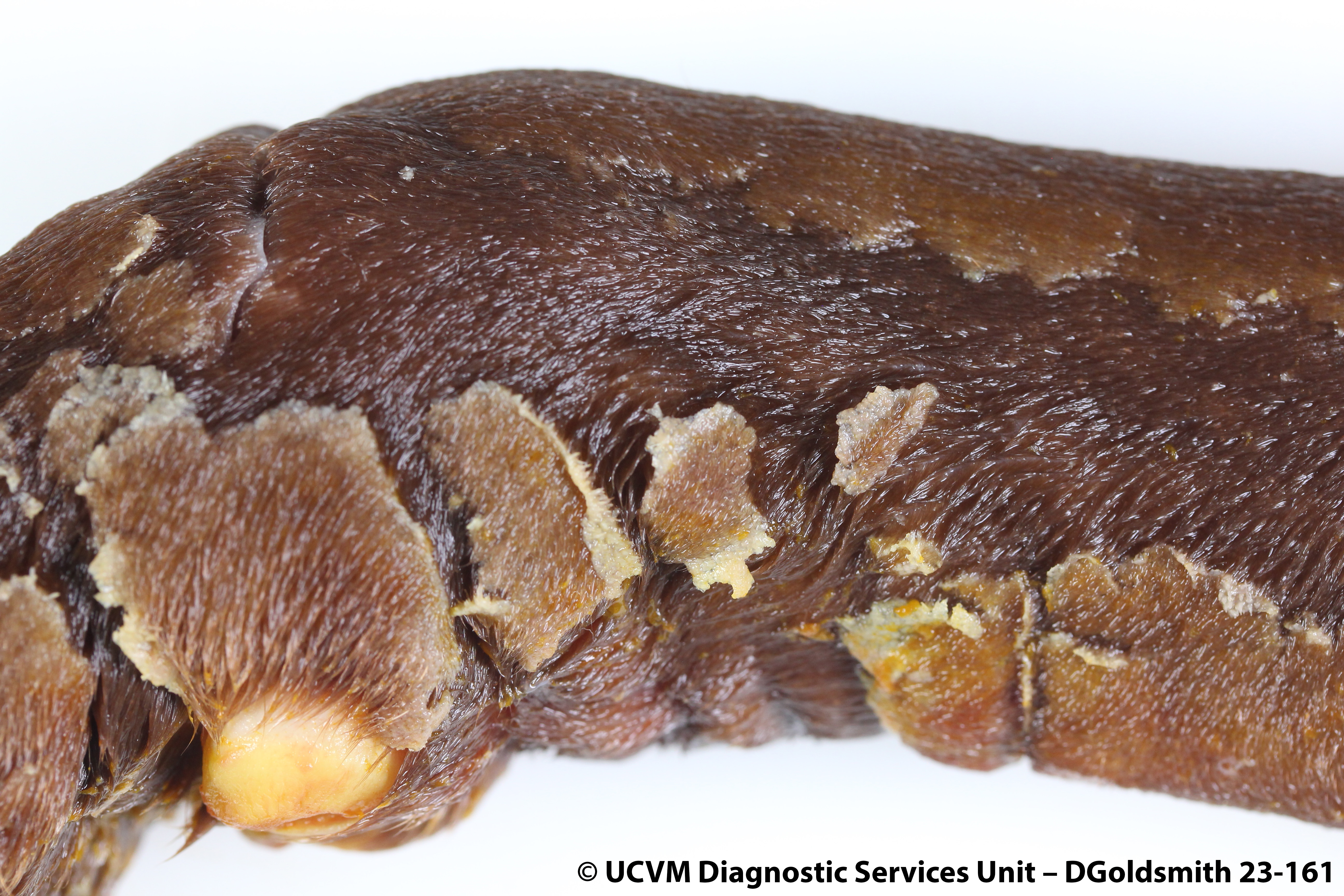 Shown: Fungal dermatitis in mycotic abortion
