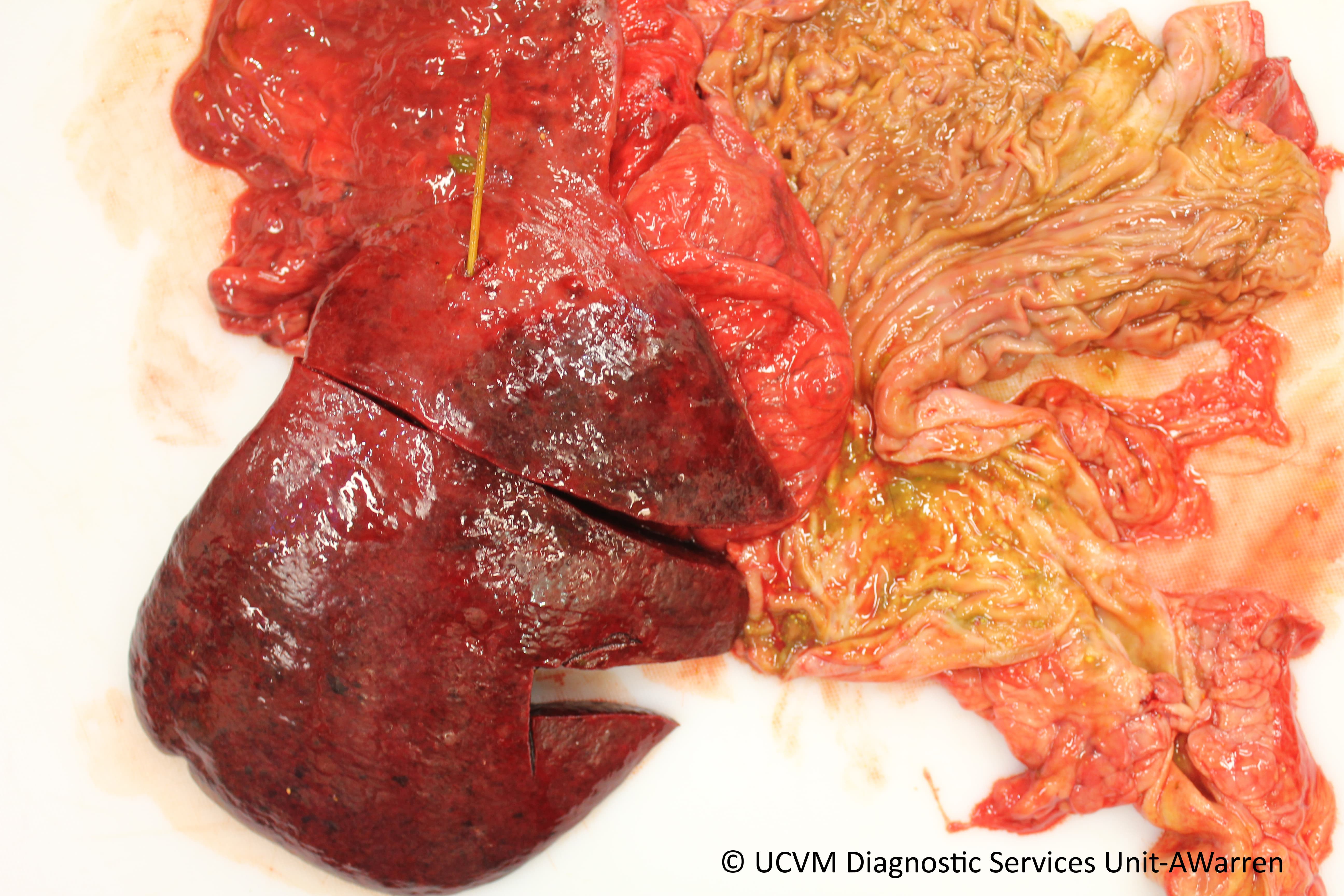 Shown: Septic peritonitis due to migrating foreign body (toothpicks)