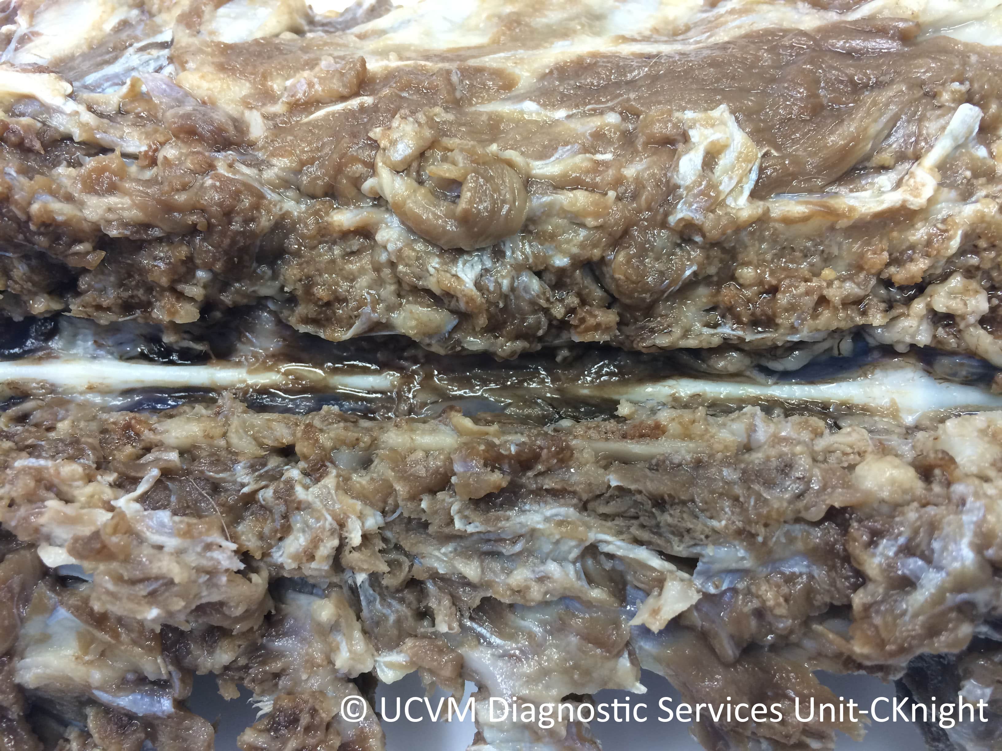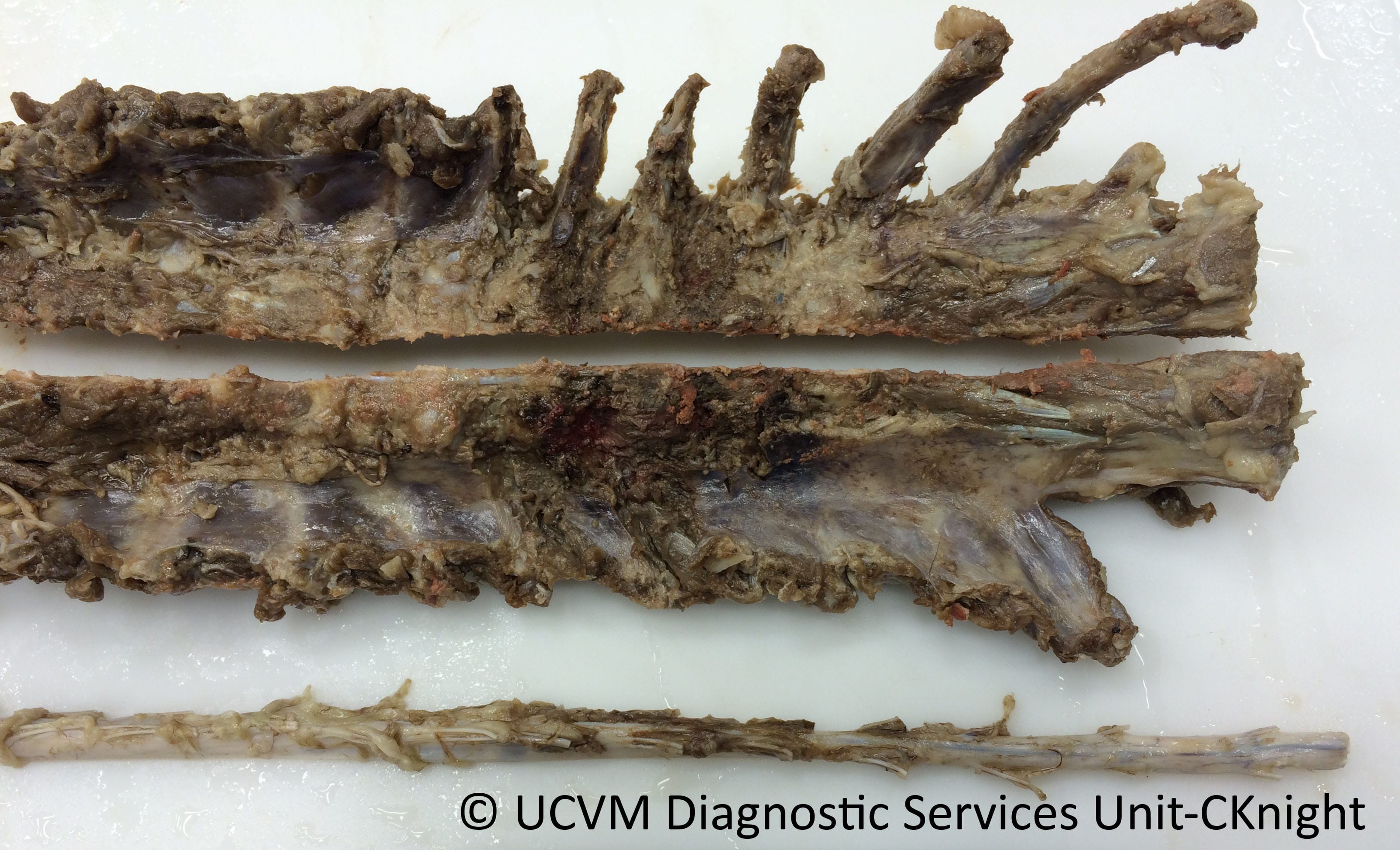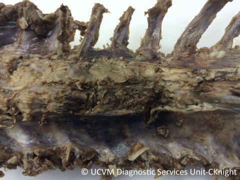 Shown: Pyogranulomatous epidural steatitis and myositis following disk rupture