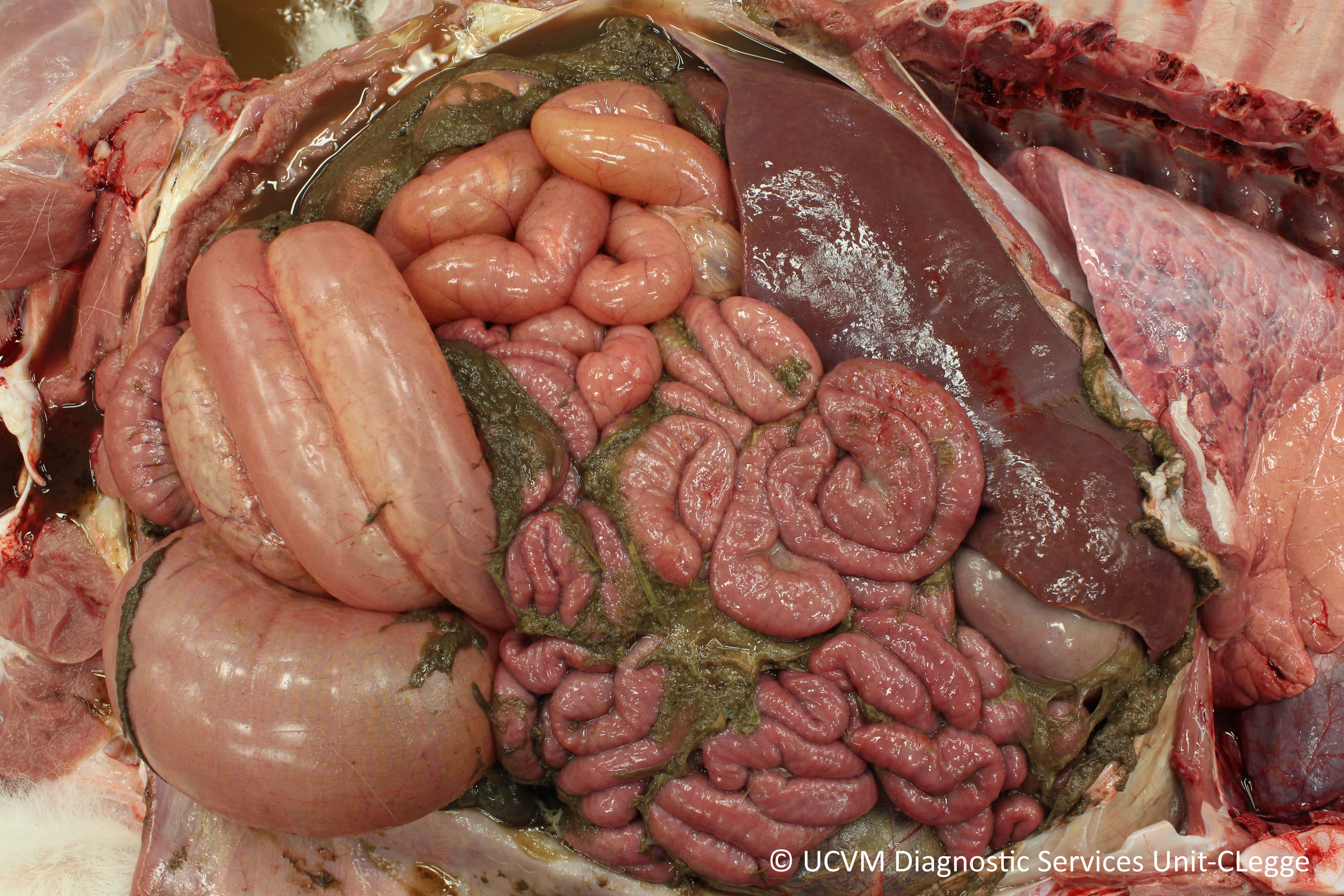 Fibrinosuppurative peritonitis caused by abomasal perforation
