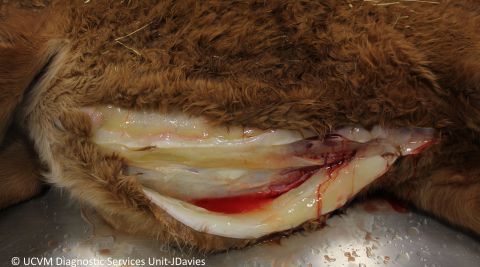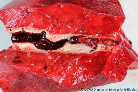 Ruminant, Ox: Lung. Embolic pneumonia associated with toe tip necrosis.