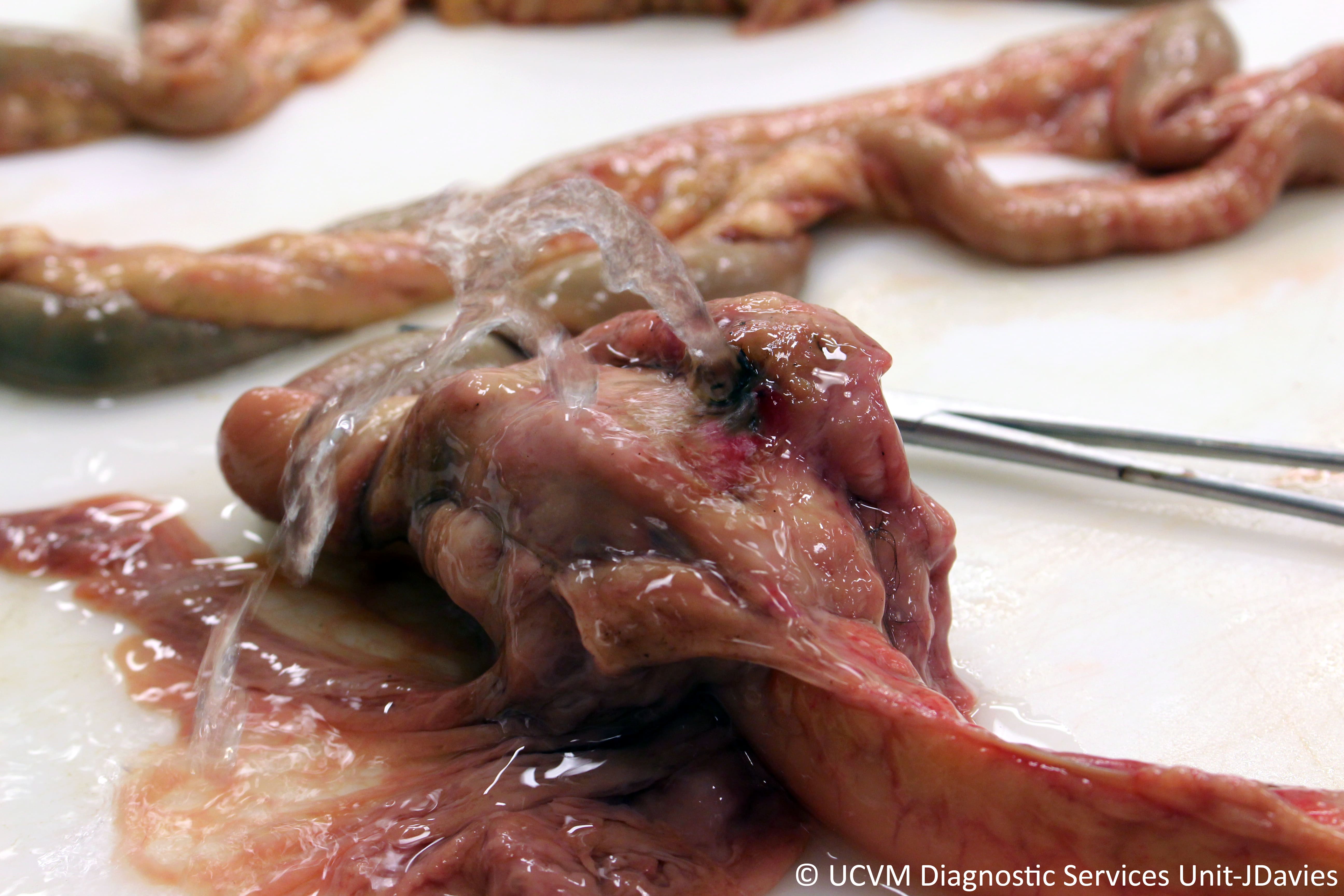 Water injection to find perforation caused by perforating jejunal lymphosarcoma