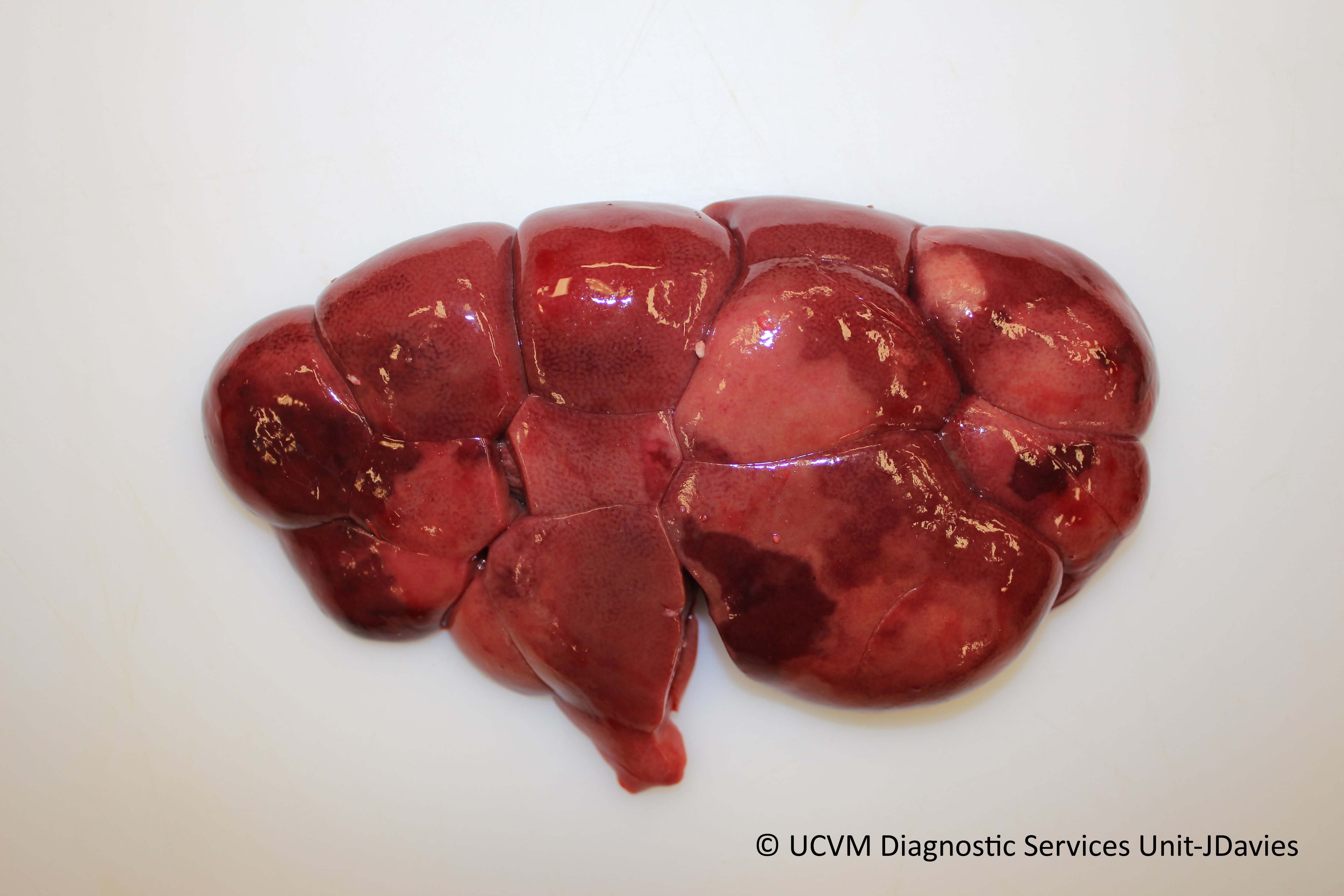 Ruminant, Bovine: Liver. Chronic passive congestion (nutmeg liver) in ionophore toxicity.