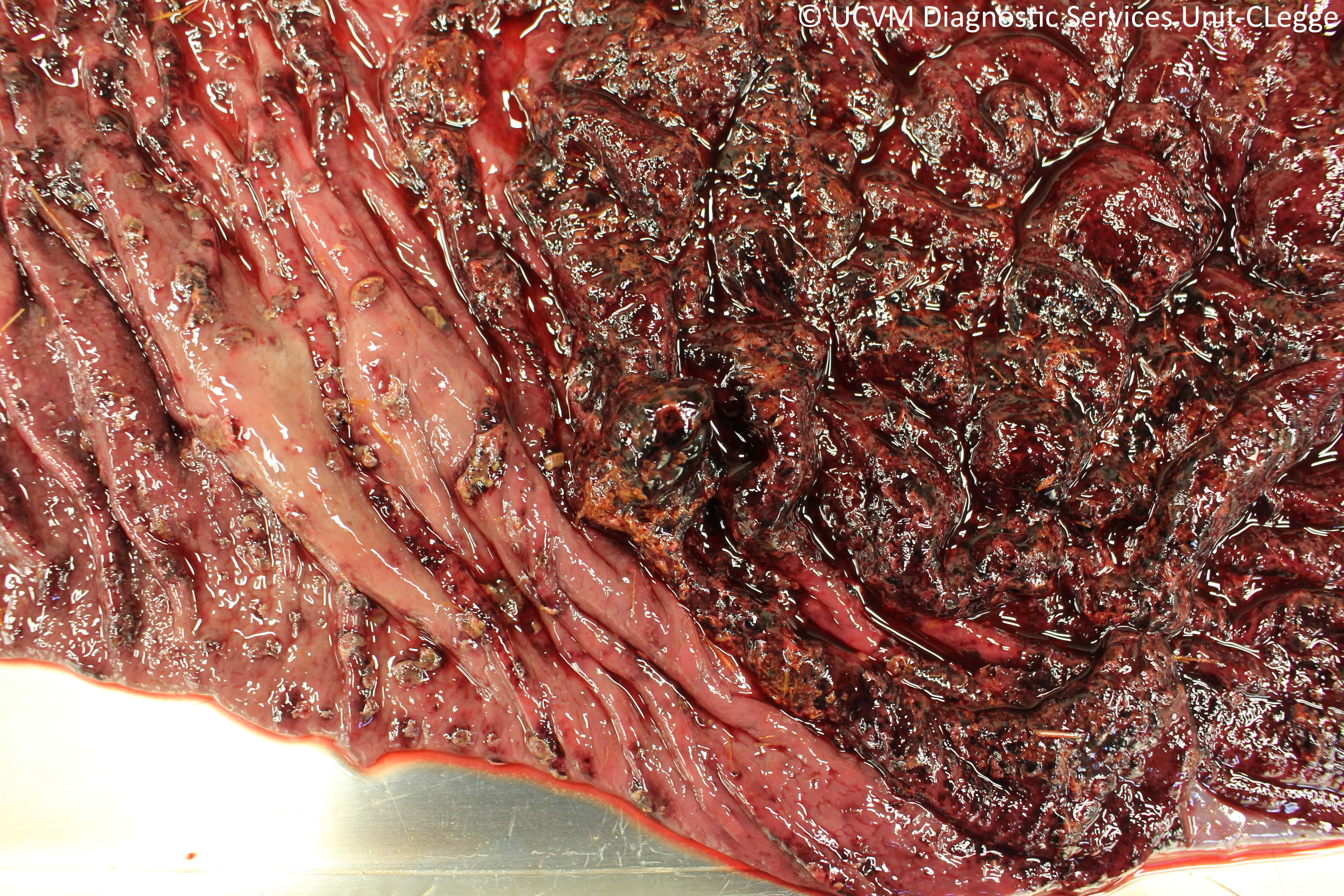 Shown: Ulcerative and hemorrhagic abomasitis