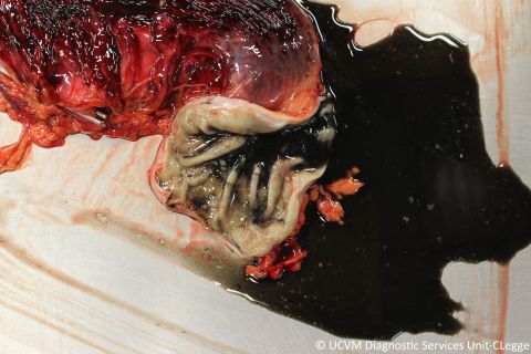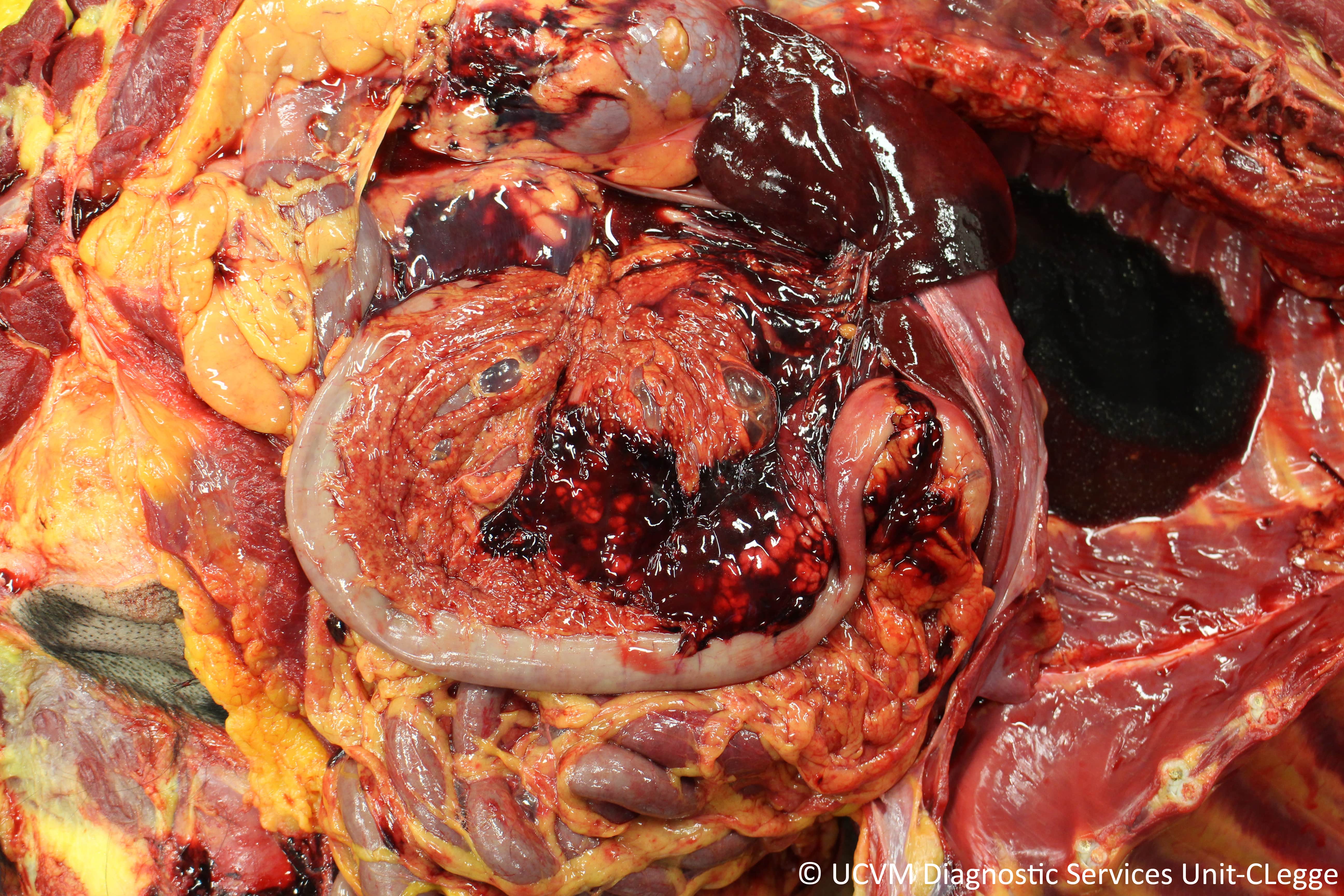 Mesenteric hemorrhage from disseminated intravascular coagulation secondary to massive hepatic necrosis