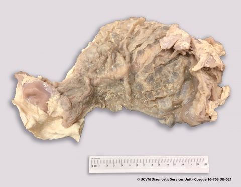 Necrotizing and hemorrhagic abomasitis with emphysema, suspect Clostridium