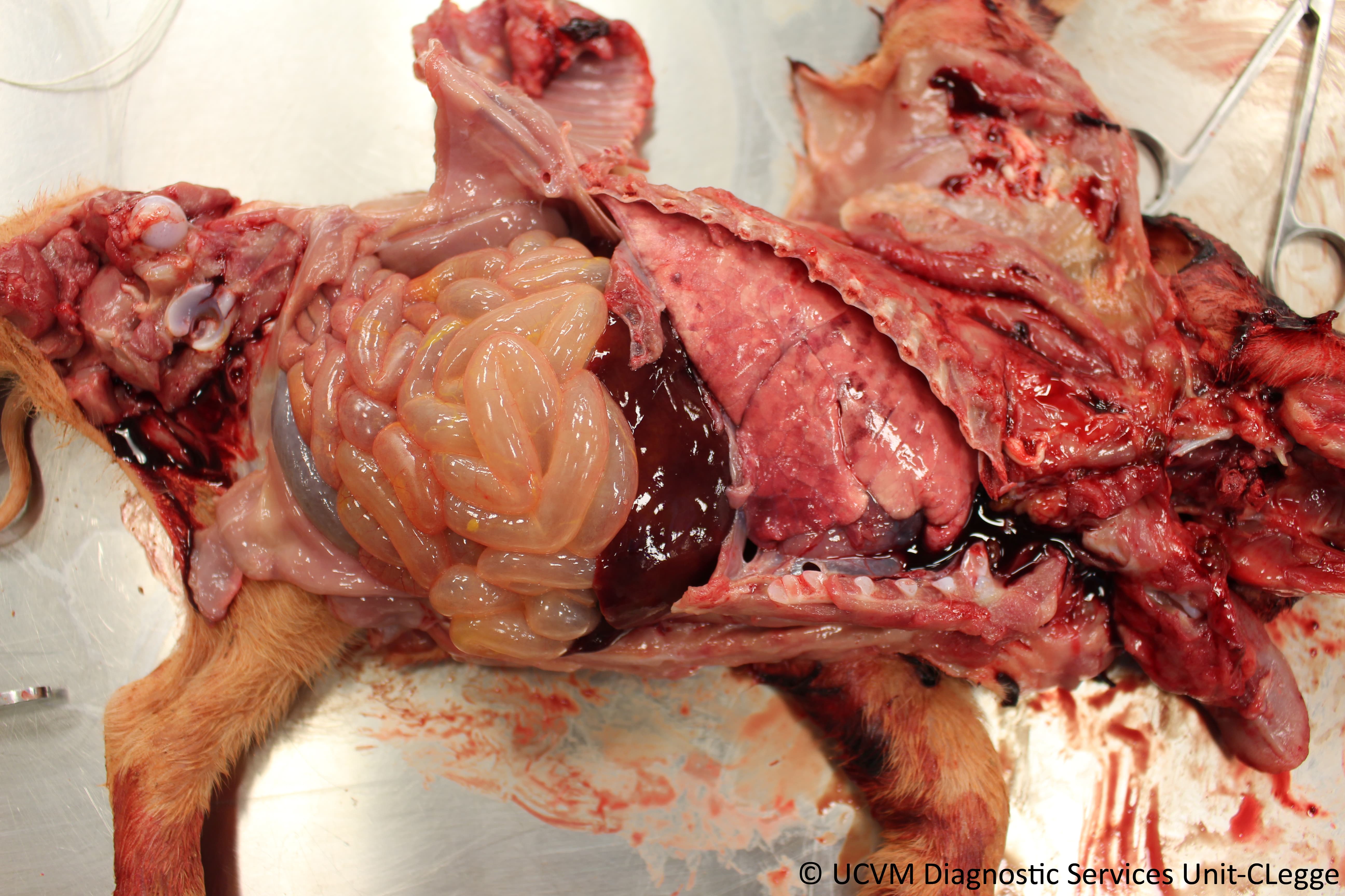 Dog: Peritoneum. Hemoabdomen in liver failure.