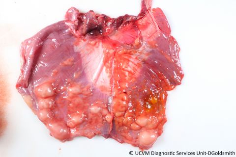 Ruminant, Ox: Brain, UV light. Polioencephalomalacia autofluorescence.