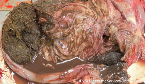 Equid, Horse: Peritoneum. Venous infarct from strangulating lipoma.