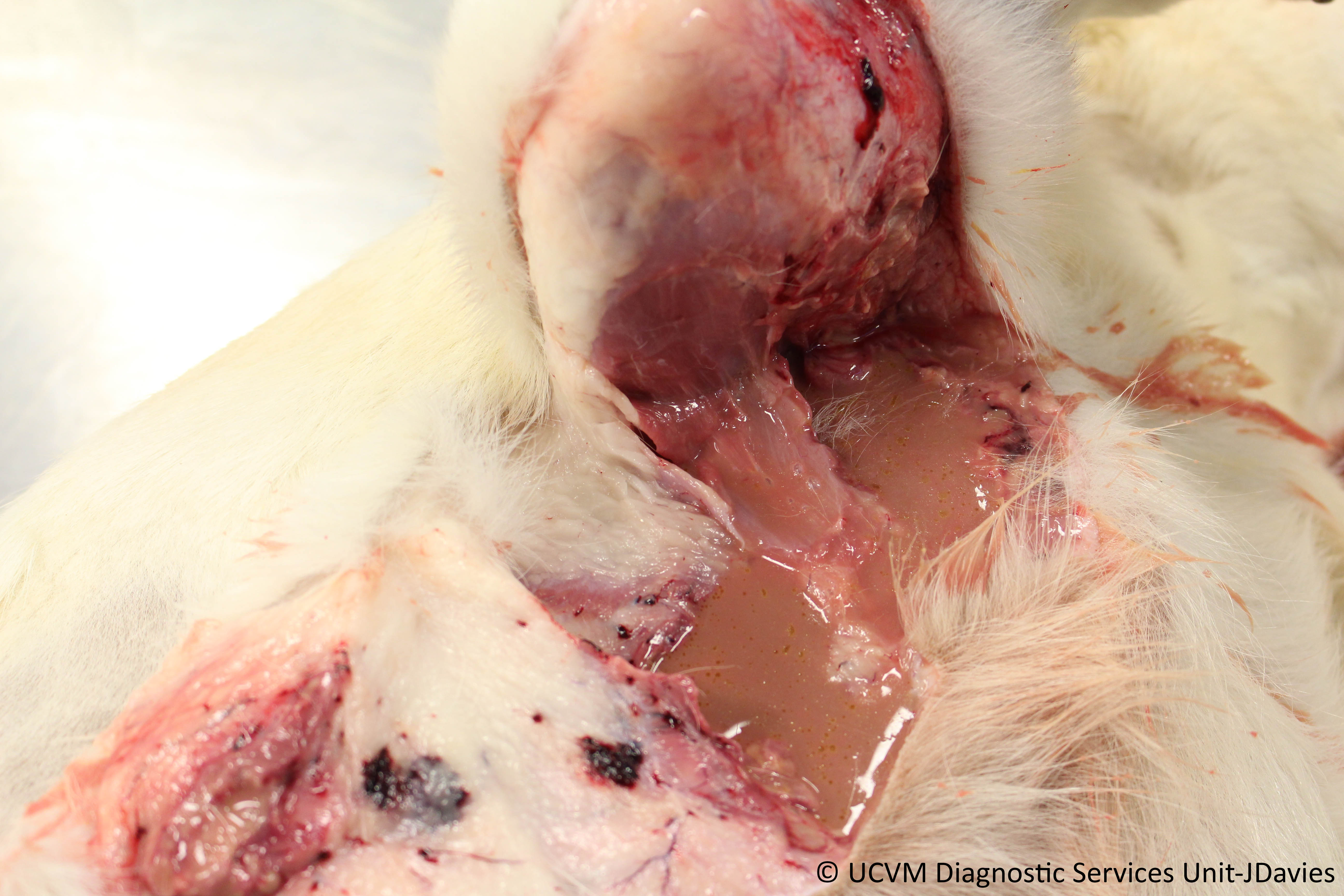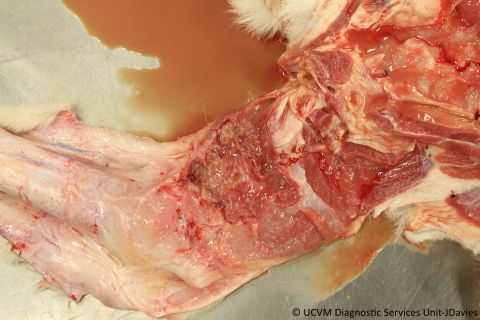 Shown: Necrotizing fasciitis and septicemia caused by Streptococcus canis