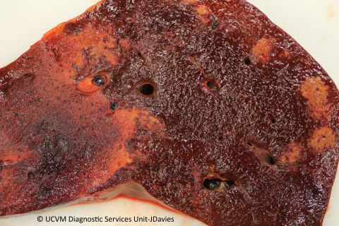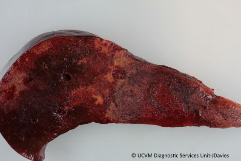 Shown: Necrotizing hepatitis caused by Clostridium novyi group