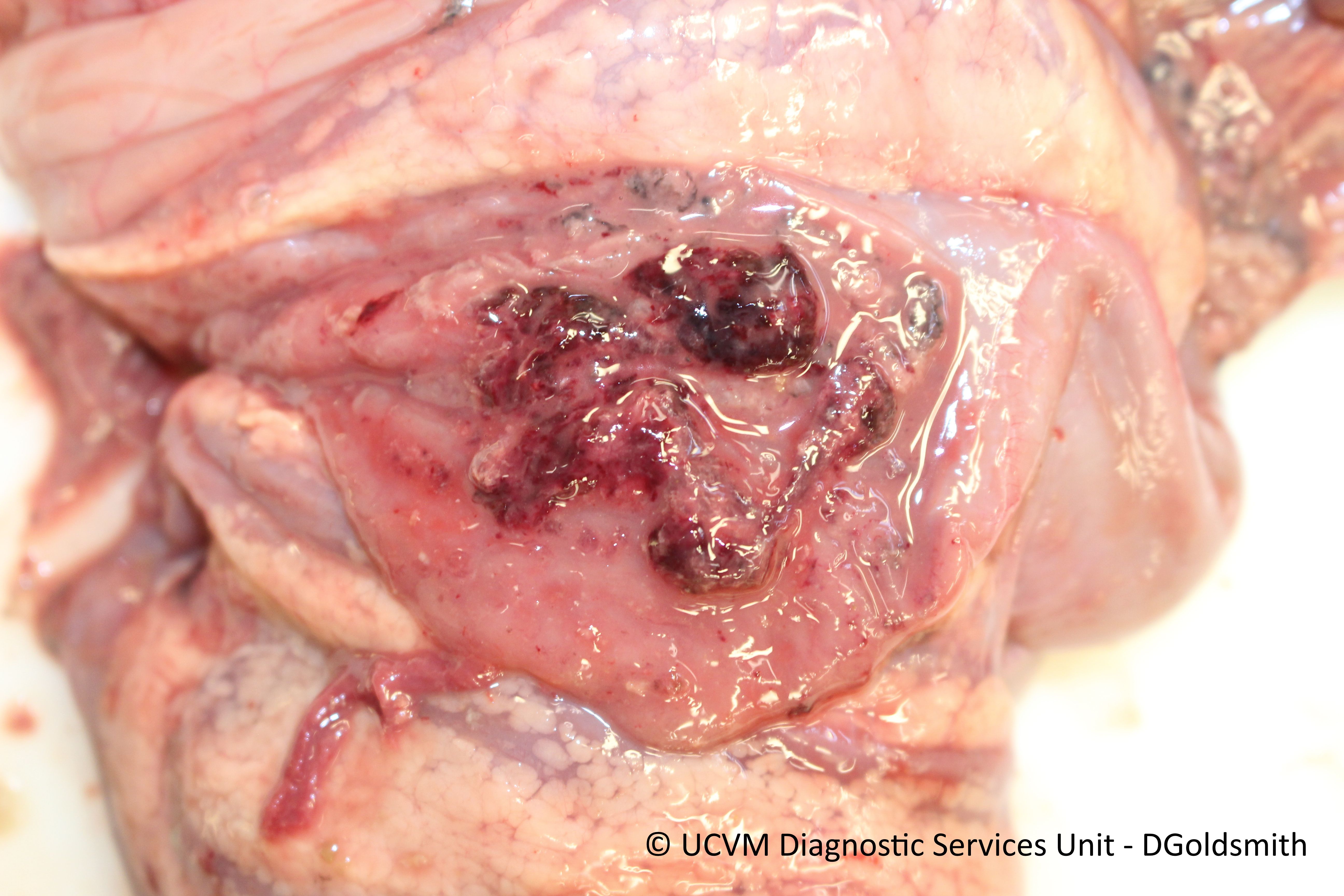Ruminant, Calf: Small intestine. Villus atrophy in cryptosporidiosis.