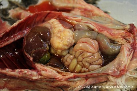 Dog: Peritoneum. Hemoabdomen in liver failure.