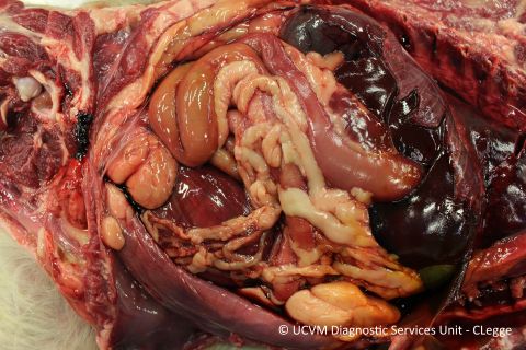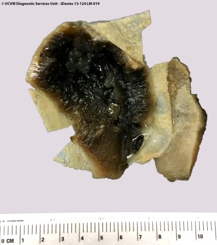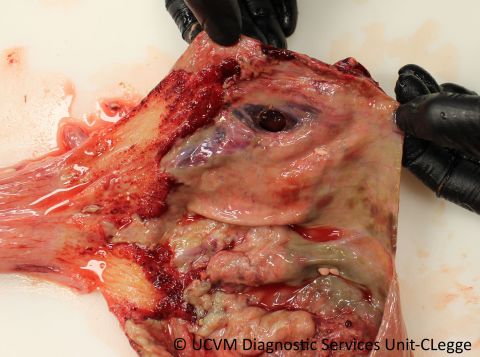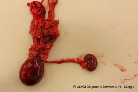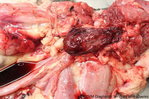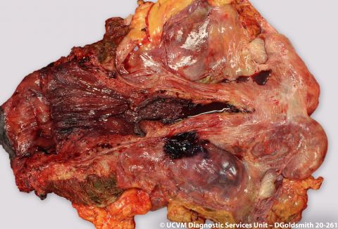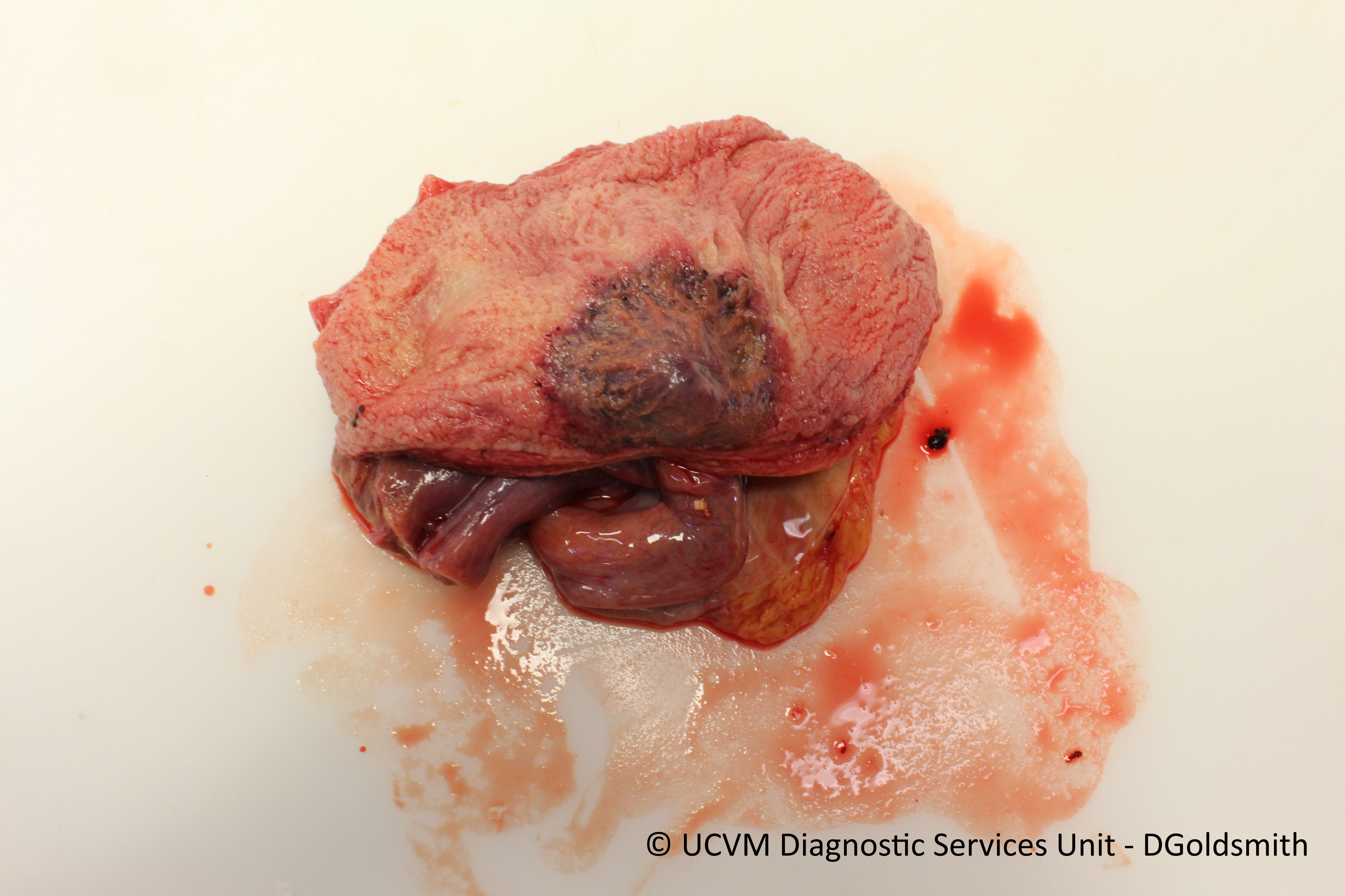 Shown: Sepsis secondary to dystocia with urinary bladder apex infarction