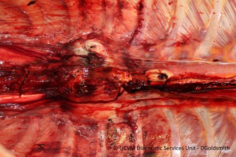 Icterus/Jaundice (hemolytic anemia due to septicemia and disseminated intravascular coagulation). Note: The lungs are normal to mildly pale.