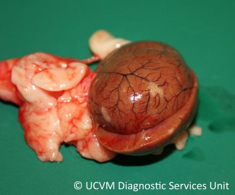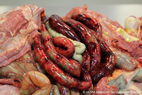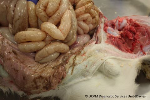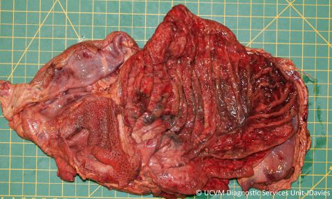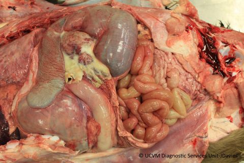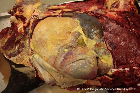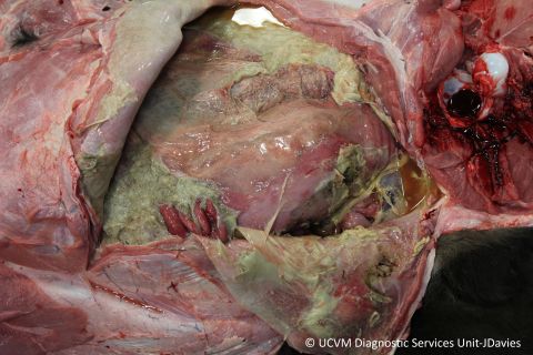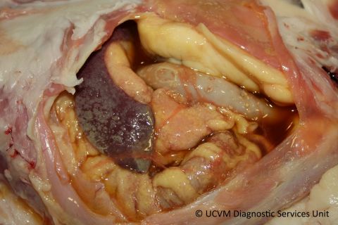 Peritonitis following abomasal perforation in a calf with clostridial abomasitis